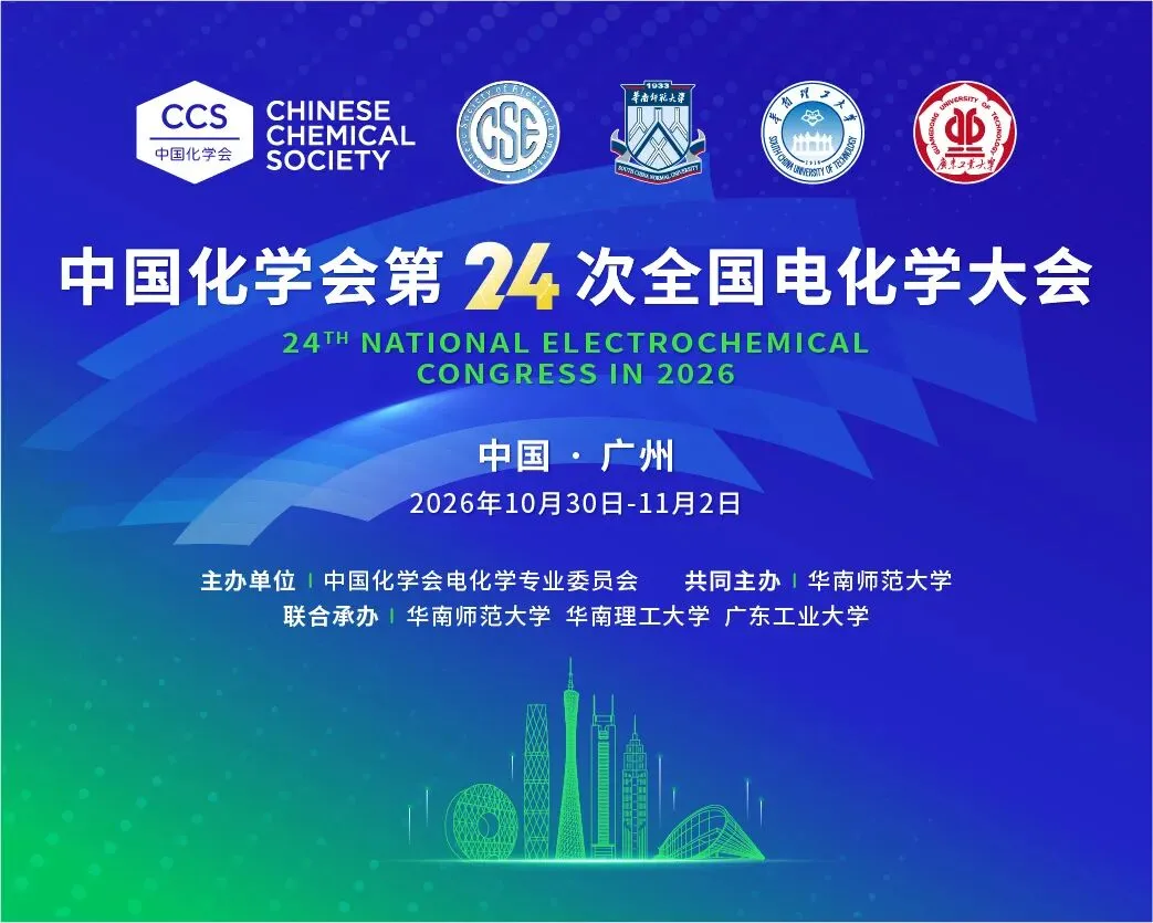 “中国化学会第二十四次全国电化学大会”将于2026年10月30日-11月2日在中国广州举行。本次大会由中国化学会电化学专业委员会和华南师范大学主办,由华南师范大学、华南理工大学、广东工业大学承办,由中山大学、暨南大学、深圳大学、广州大学、有研(广东)新材料技术研究院共同协办。本届大会主题是:电化学赋能绿色未来。