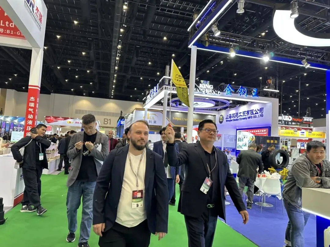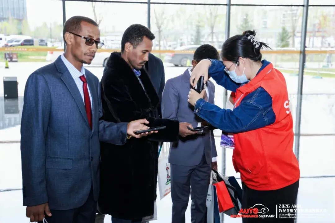 协会特意组织海外采购商团前往 AMR 中国国际汽保汽配展现场进行专场巡馆。在协会副会长许教益与秘书长张彦的陪同下,来自泰国、越南、巴基斯坦、沙特等15个国家的海外客商依次参观B1\B2\B3展馆,近距离了解中国优质汽配产品、前沿技术与全产业链实力,与参展企业面对面交流、现场对接需求。此次巡馆让海外采购商提前感受中国汽配产业的制造水平与供应能力,也为下午大会的深度合作交流奠定了坚实基础,真正实现先看品、再对接、后洽谈,让出海对接更高效、更精准。