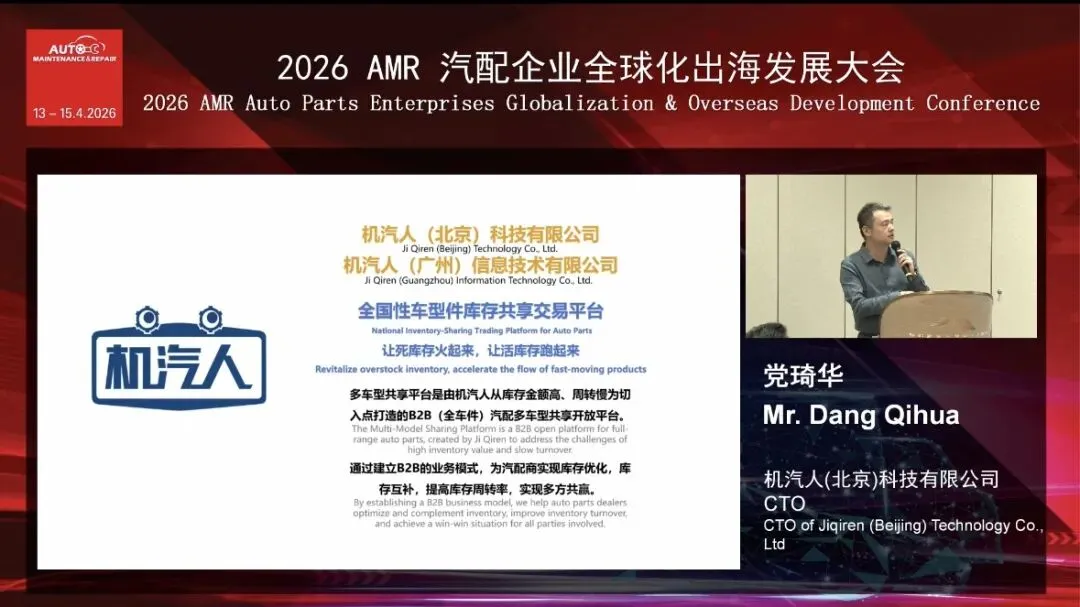 机汽人(北京)科技有限公司 IT部负责人党琦华先生带来了以全链贯通・生态共赢为主题的分享,从技术与平台视角详解了汽配产业一站式服务平台的构建思路。机汽人作为全国性的车型件配件商 B2B 交易平台,经过多年发展已经搭建起覆盖全国 31 省 140 市的服务网络,拥有超 5 万家合作会员与超 18000 家库存卖家,平台整合了 200 多个汽车品牌的 1800 万余个原厂 OE 件,库存总额突破 550 亿元,通过数字化、标准化、规范化的资源整合,实现了库存优化、互补与高效周转,同时打通网页、客户端、小程序、APP 等多端服务,对接保险公司、汽修连锁与汽配 ERP 系统,为出海企业提供稳定高效的供应链与数据支撑,助力全产业链实现协同共赢。