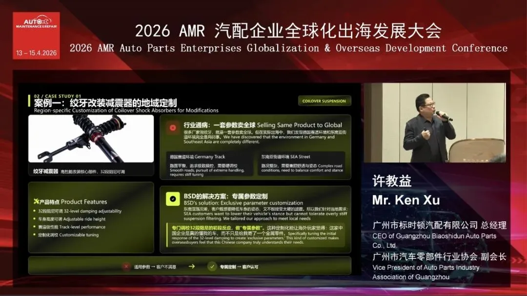 广州市汽车零部件行业协会副会长、广州市标时顿汽配有限公司总经理许教益先生聚焦全球汽配市场同质化竞争难题,分享了如何依靠性能定制走出差异化发展道路。他指出,当前海外汽车后市场已经彻底告别只要有货就能卖的粗放阶段,单纯的价格战让企业利润被不断摊薄,缺乏定价权与品牌溢价,而改装车市场与豪华车保养需求正呈现逆势增长的态势,成为值得挖掘的蓝海市场。标时顿主动放弃同质化通货,转向高性能定制化配件研发,针对不同区域市场的特殊环境与使用需求做专属产品,用贴合本地需求的解决方案赢得海外客户认可,他也在分享中强调,出海的本质是建立信任,真正读懂当地客户需求,才能打破中国制造的刻板印象,打造有竞争力的高端品牌。