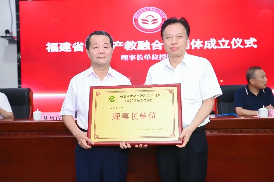 期间,举行了福建省食品产教融合共同体(福建省食品职教集团)揭牌仪式,福建省食品职教集团理事长、副理事长单位选举和授牌仪式,在场各成员单位共同审议、表决了《福建省食品产教融合共同体章程》。