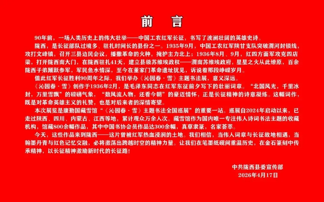 展览免费向公众开放。让我们相约四月,相聚陇西,共赴这场红色文化与书法艺术的盛宴!