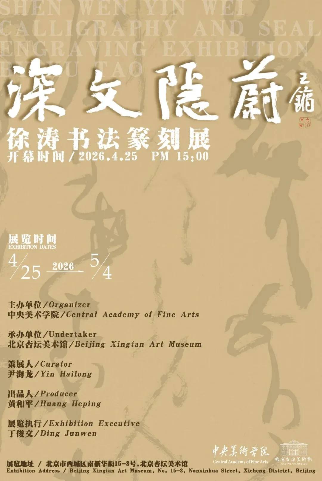 展览预告丨“深文隐蔚—徐涛书法篆刻展”将于2026年4月25日在北京杏坛美术馆开展