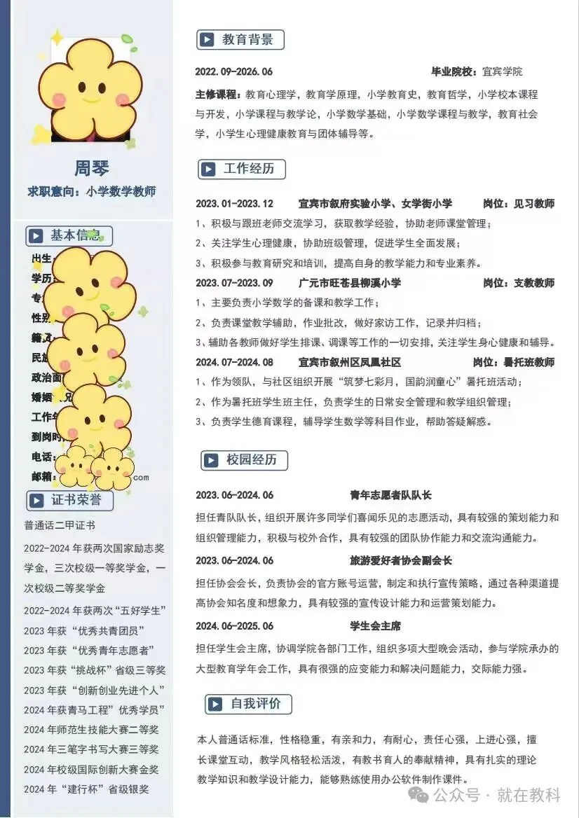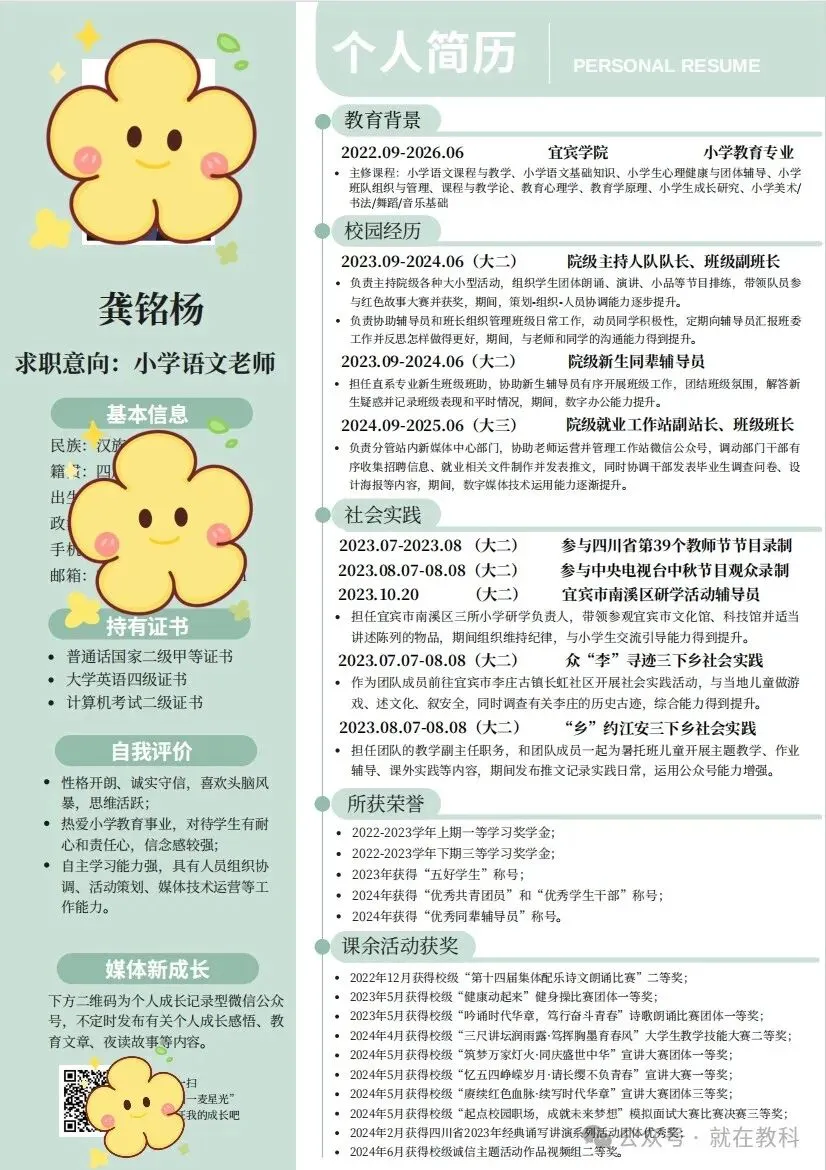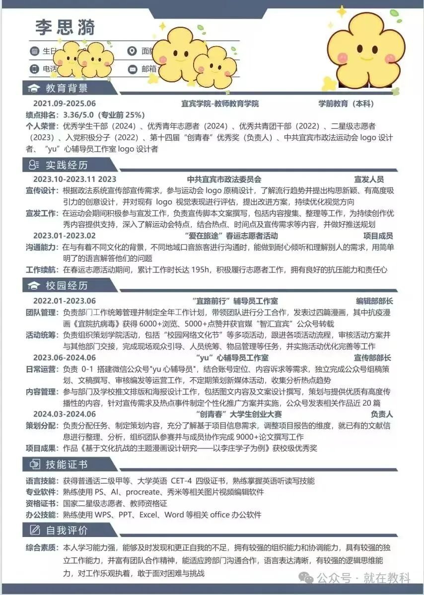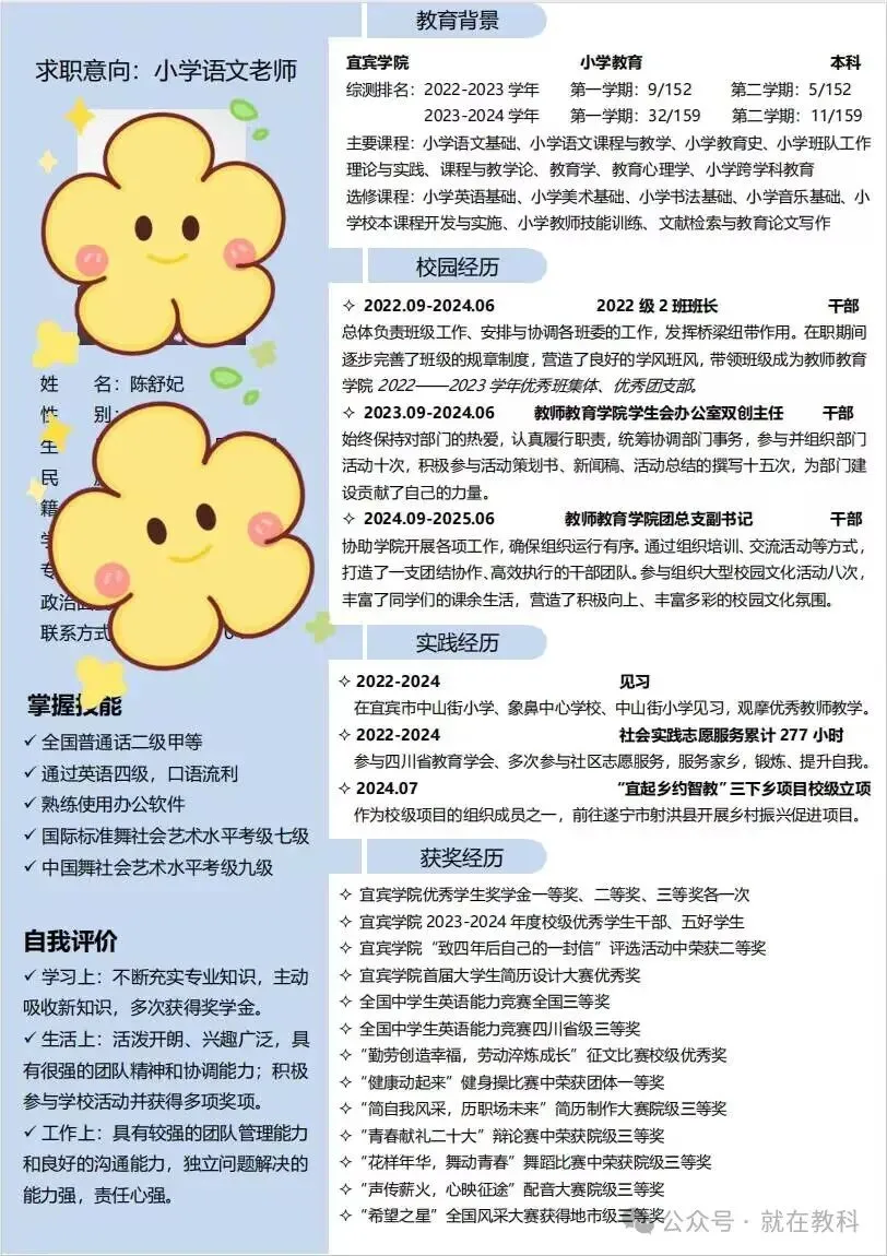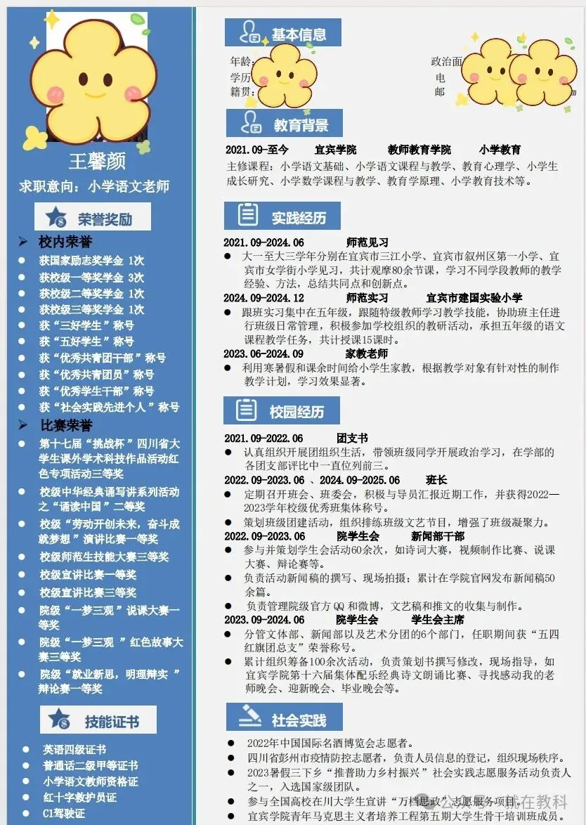 为了进一步贯彻落实党的二十届三中全会精神,推动全面深化改革,助力毕业生高质量就业,提升大学生的实践能力和创新思维能力,进一步加强学生重视未来的职业生涯规划和求职竞争力,教师教育学院就业工作站于2024年10月21日—27日举办了一场以“简历飞扬,梦想启航”为主题的简历设计大赛。本次大赛全程线上举办,学院2021级学生全体参与、部分2022级、2023级学生参与。