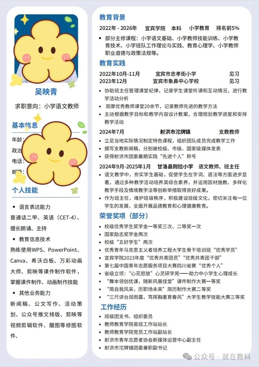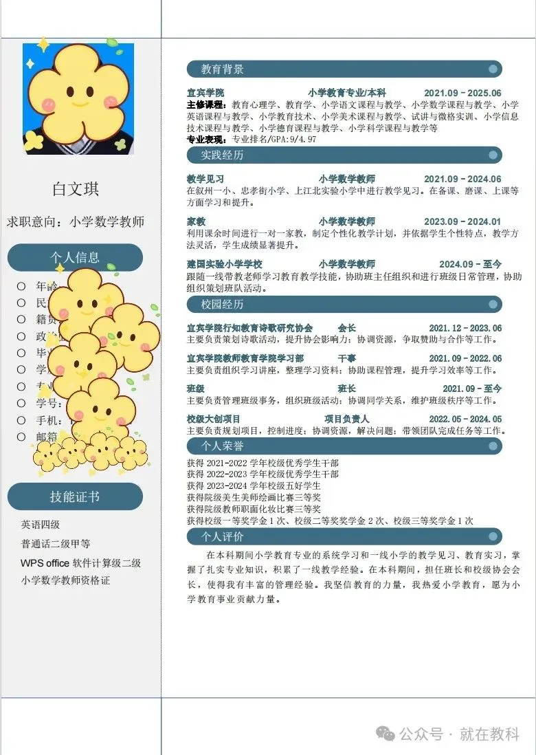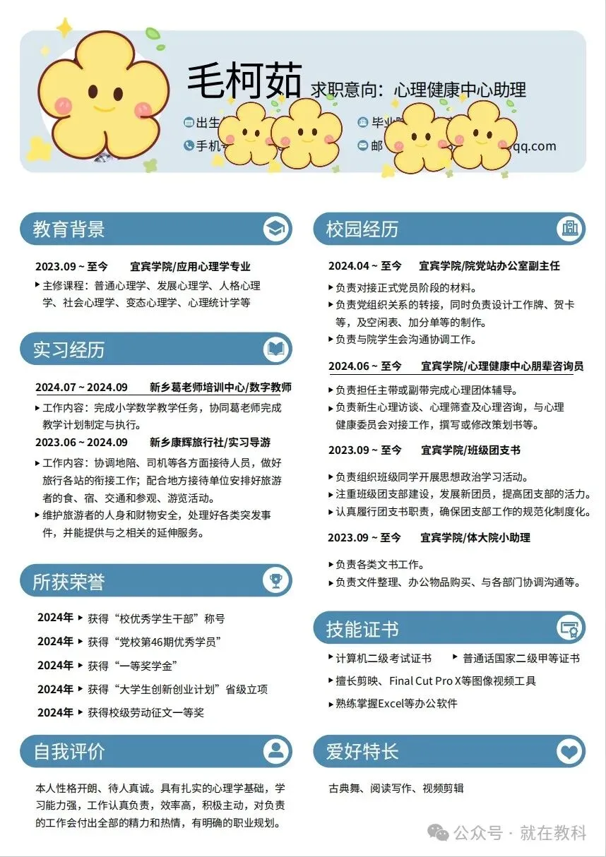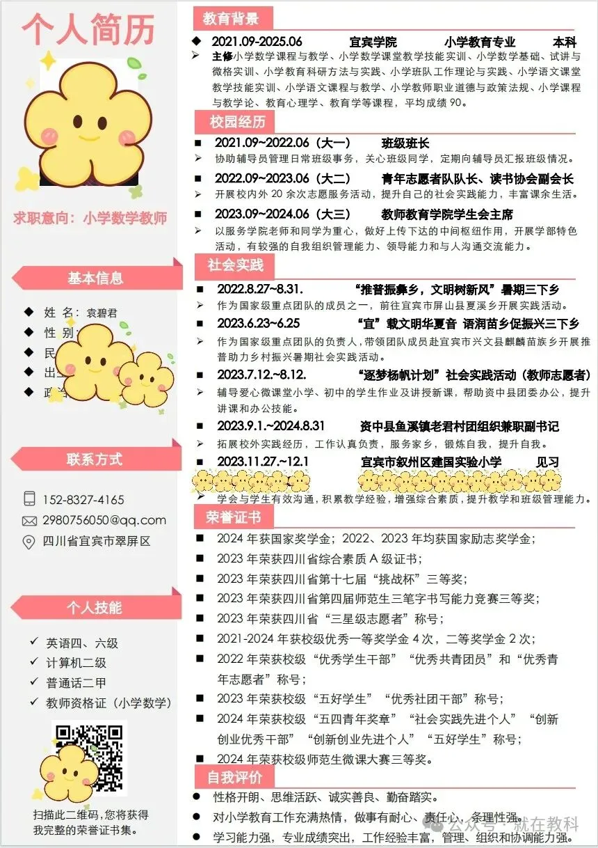为了进一步贯彻落实党的二十届三中全会精神,推动全面深化改革,助力毕业生高质量就业,提升大学生的实践能力和创新思维能力,进一步加强学生重视未来的职业生涯规划和求职竞争力,教师教育学院就业工作站于2024年10月21日—27日举办了一场以“简历飞扬,梦想启航”为主题的简历设计大赛。本次大赛全程线上举办,学院2021级学生全体参与、部分2022级、2023级学生参与。