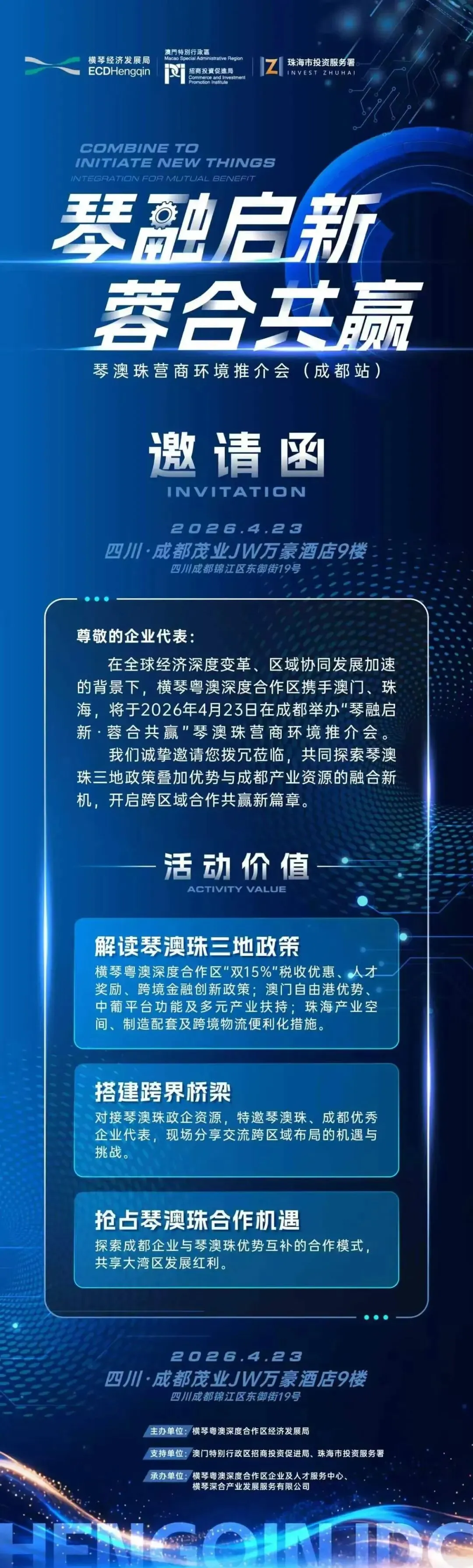 【活动预告】|琴澳珠营商环境推介会落地成都!解锁大湾区政策红利,4月23日不见不散
