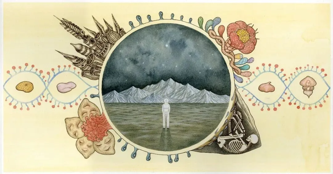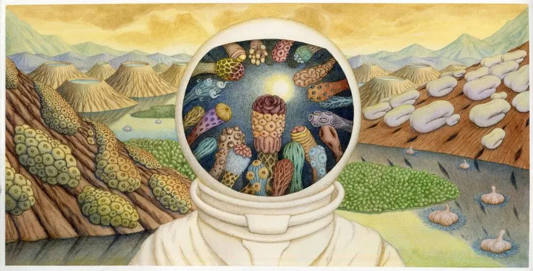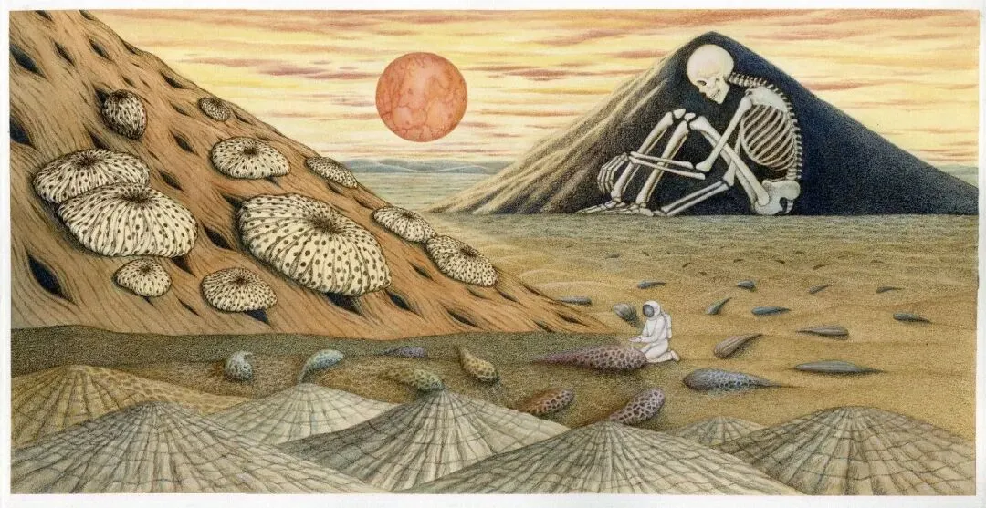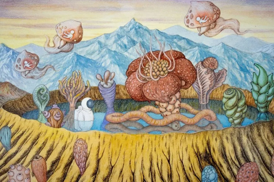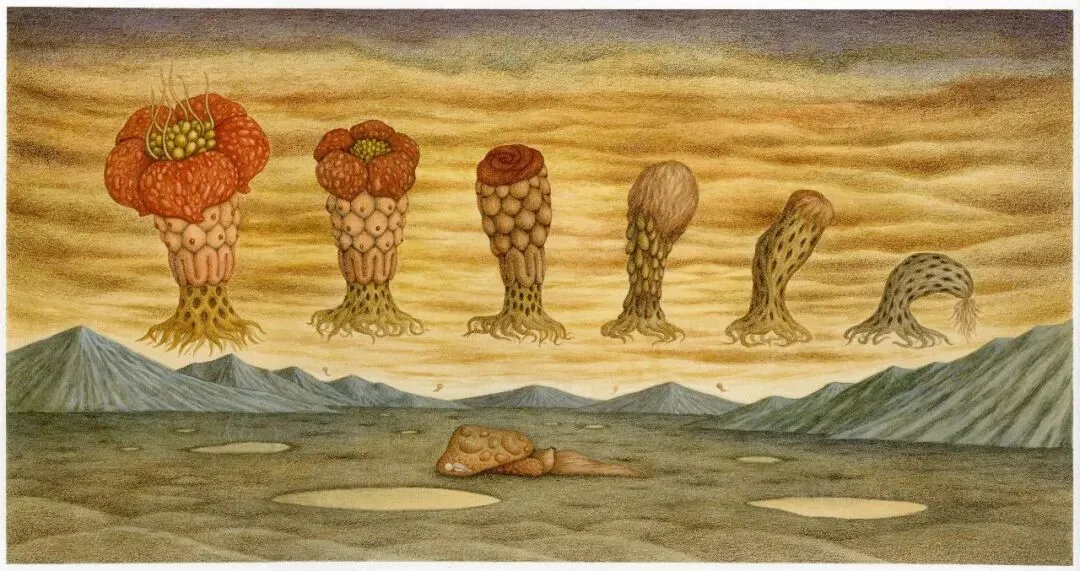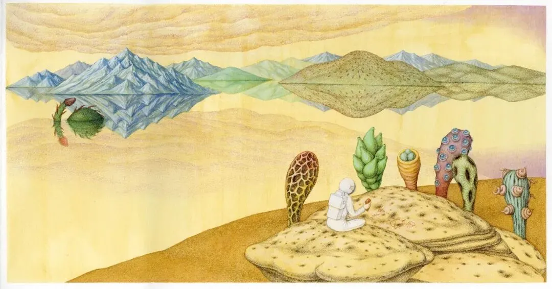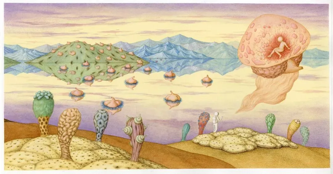 这是一个科幻背景的短故事,描绘了一个人迷失在一个陌生的地方,在生与死的边缘挣扎,目睹了震撼人心的奇景,经历了昙花一现的友谊,窥见到大自然的神秘,却无法和任何人分享这些体验,甚至无法证明自己的所见所闻是真实还是幻象。然而通过与外星生命的接触,目睹了他们出生和消逝的全过程后,“我”体会到了生命的短暂与无常,也学会了平静地面对孤独,面对自己的消亡。