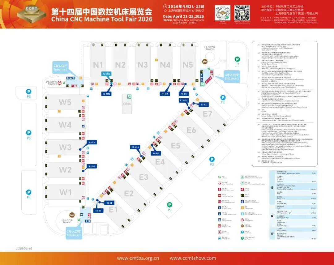 第十四届中国数控机床展览会(CCMT 2026)将于2026年4月21-25日在上海浦东·上海新国际博览中心举办。本届展会将启用上海新国际博览中心全部17个室内展馆(E1-E7、N1-N5、W1-W5)和1个临时馆(ON6),展会总面积达20.2万平方米。