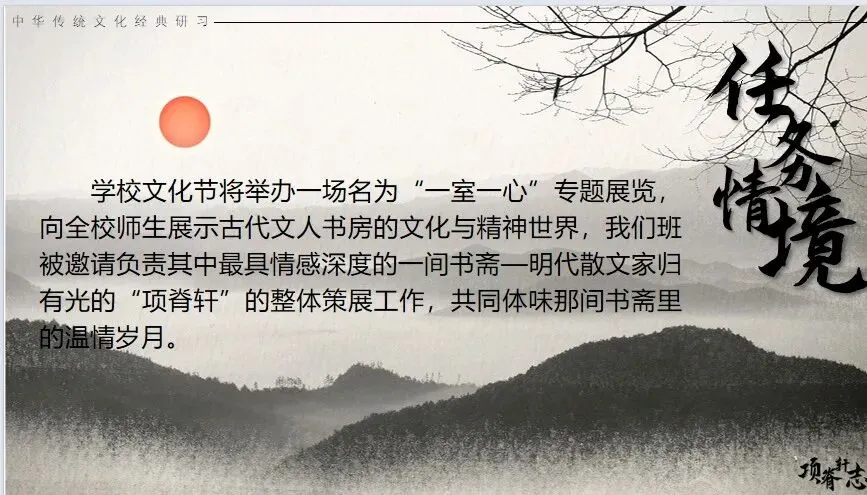 学校文化节将举办一场名为“一室一心·古人的书房”的专题展览。我们班被正式邀请,负责明代散文家归有光的“项脊轩”整体策展工作。
