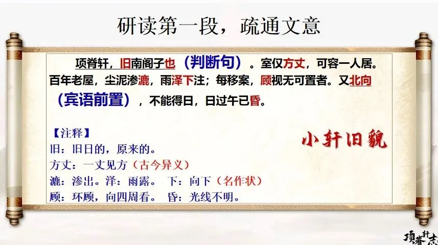 任何展览,首先要复原空间。请各位“策展师”聚焦课文第一段,我们的任务是:还原项脊轩的“前世”与“今生”。