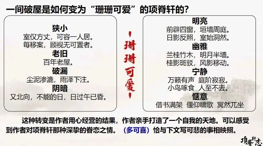明确:最深挚的感情,往往藏在最平凡的日常里。“问古事”、“学书”,是精神上的共鸣与陪伴;“述诸小妹语”,带着家常的幽默与温馨。没有轰轰烈烈,只有岁月静好。也正因如此,失去后的“室坏不修”,才显得那么绝望。
