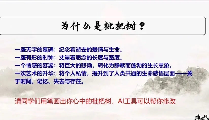 它是一个情感的容器:归有光将妻子死后巨大的、无处安放的悲恸,全部倾注、封存于这棵树中。