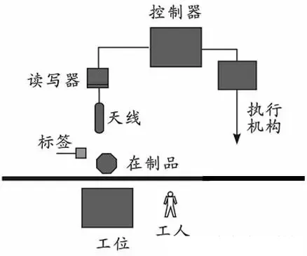 1、在生产线的托盘上粘贴RFID抗金属标签,并在指定的加工点设置RFID读写器,当托盘经过读写器时,系统能够读取标签信息。