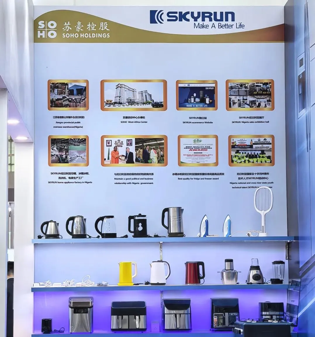 · 大家电:SKYRUN品牌冰箱、冰柜、空调、洗衣机——专为非洲市场打造,具备宽电压、强制冷、耐用实用等特性,应对当地用电与气候挑战。