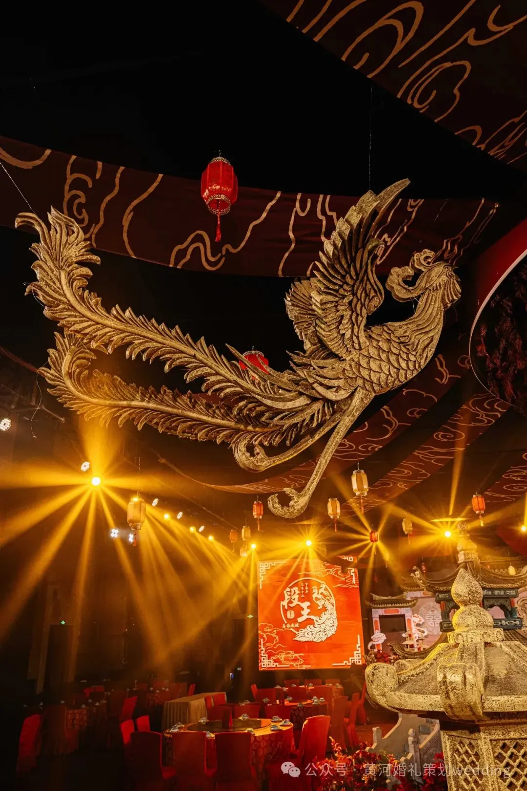 婚礼一般以红色为主色调,搭配金色,营造出一种华丽而庄重的氛围。婚礼现场布置有龙凤造型的装饰,以及传统的中式灯笼和红色布幔。仪式中包括迎亲、跨火盆马鞍、秤杆挑盖头、拜天地、交杯酒等传统环节。新娘穿着传统的凤冠霞帔,新郎则穿着红色的长袍马褂。整个婚礼现场热闹非凡,充满了喜庆的气氛。