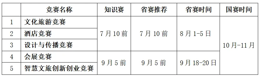 1、文化旅游竞赛(旅游新业态策划、旅游项目调研、旅游目的地营销和研学旅游数智化运营模拟四个组别)