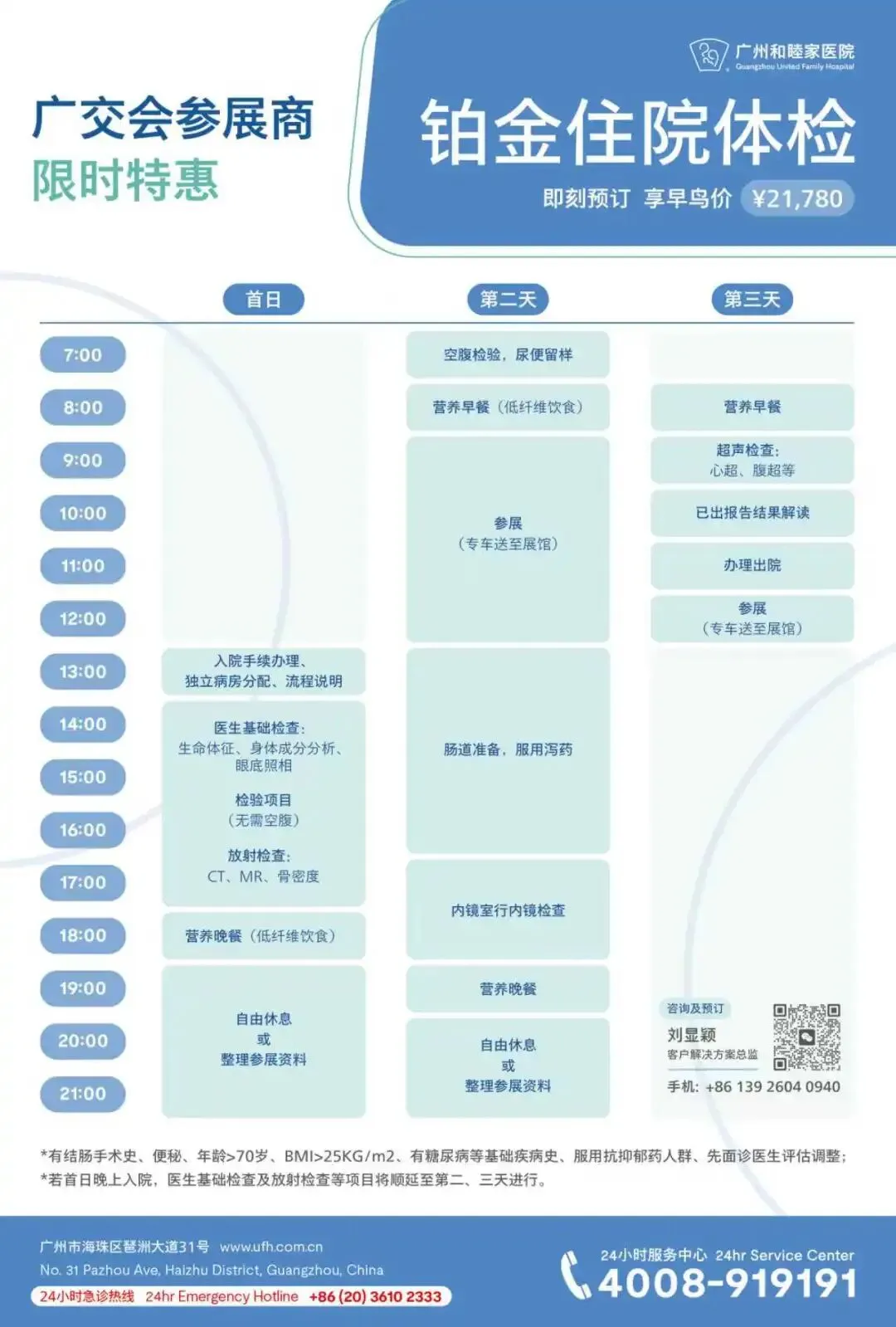 即日起,我院推出铂金住院体检套餐广交会限时特惠,即刻预订可享早鸟价。