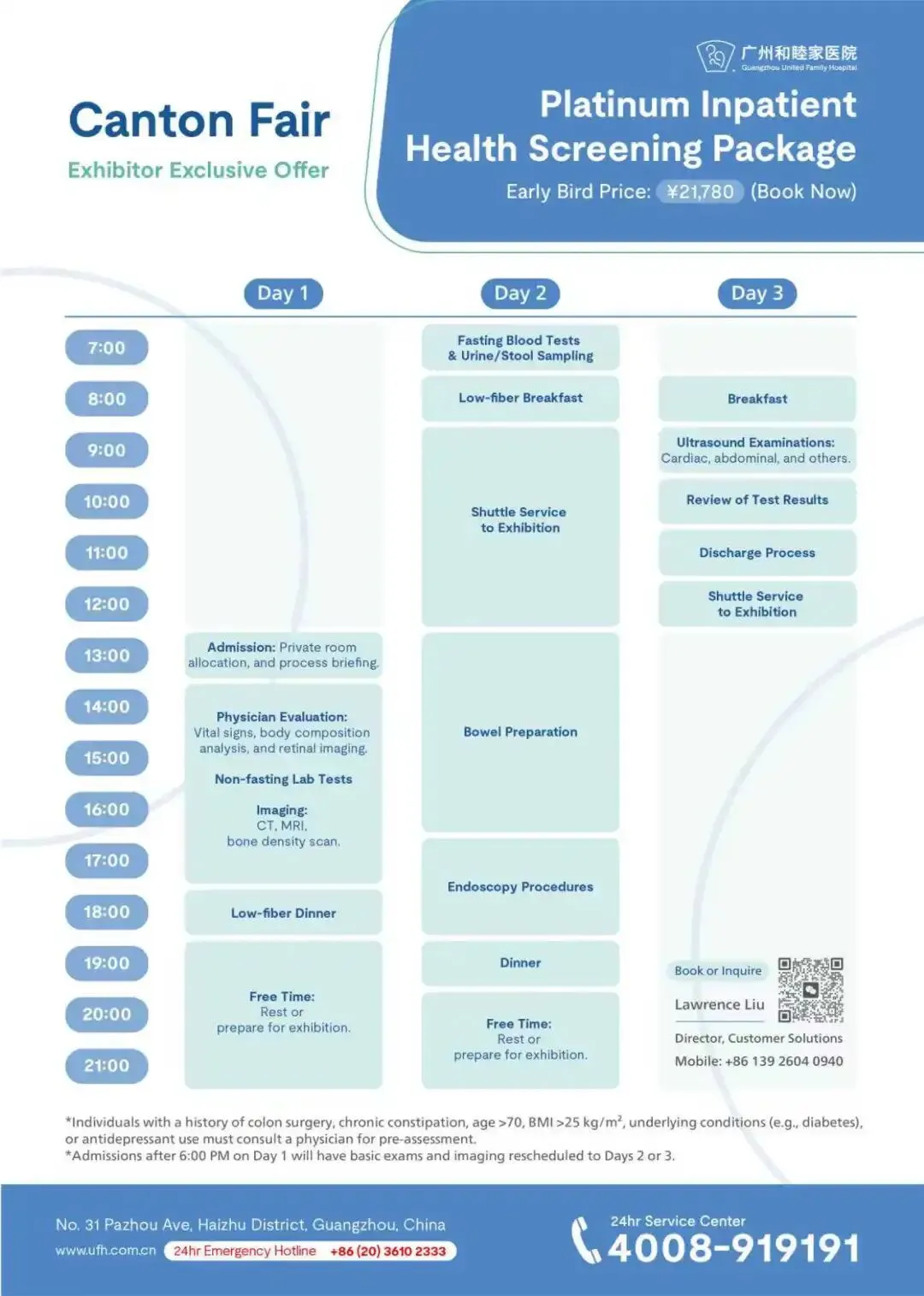 Starting today, Guangzhou United Family Hospital launches a Canton Fair Limited-Time Special Offer for the Platinum Inpatient Health Screening Package.Book now to enjoy the early bird price.