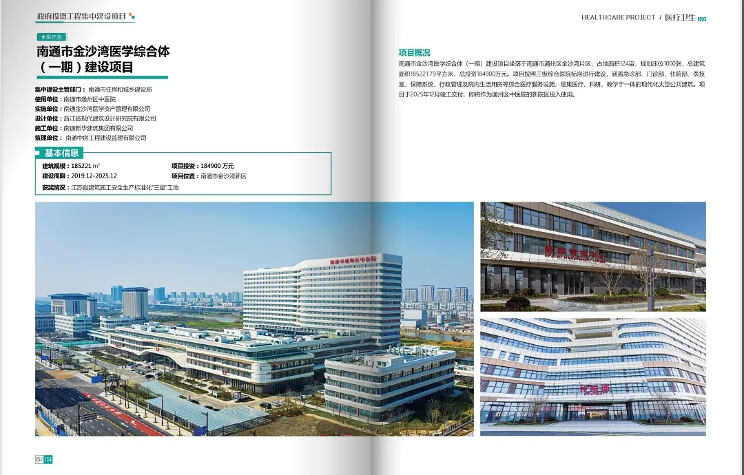 此前,金沙湾医学综合体(一期)建设项目已成功入选《2024-2025 江苏省政府投资工程集中建设项目案例集》,跻身全省政府投资集中建设项目示范标杆行列;本次亮相省级绿建博览会,更是对项目综合实力的又一次权威加持与专业认可。