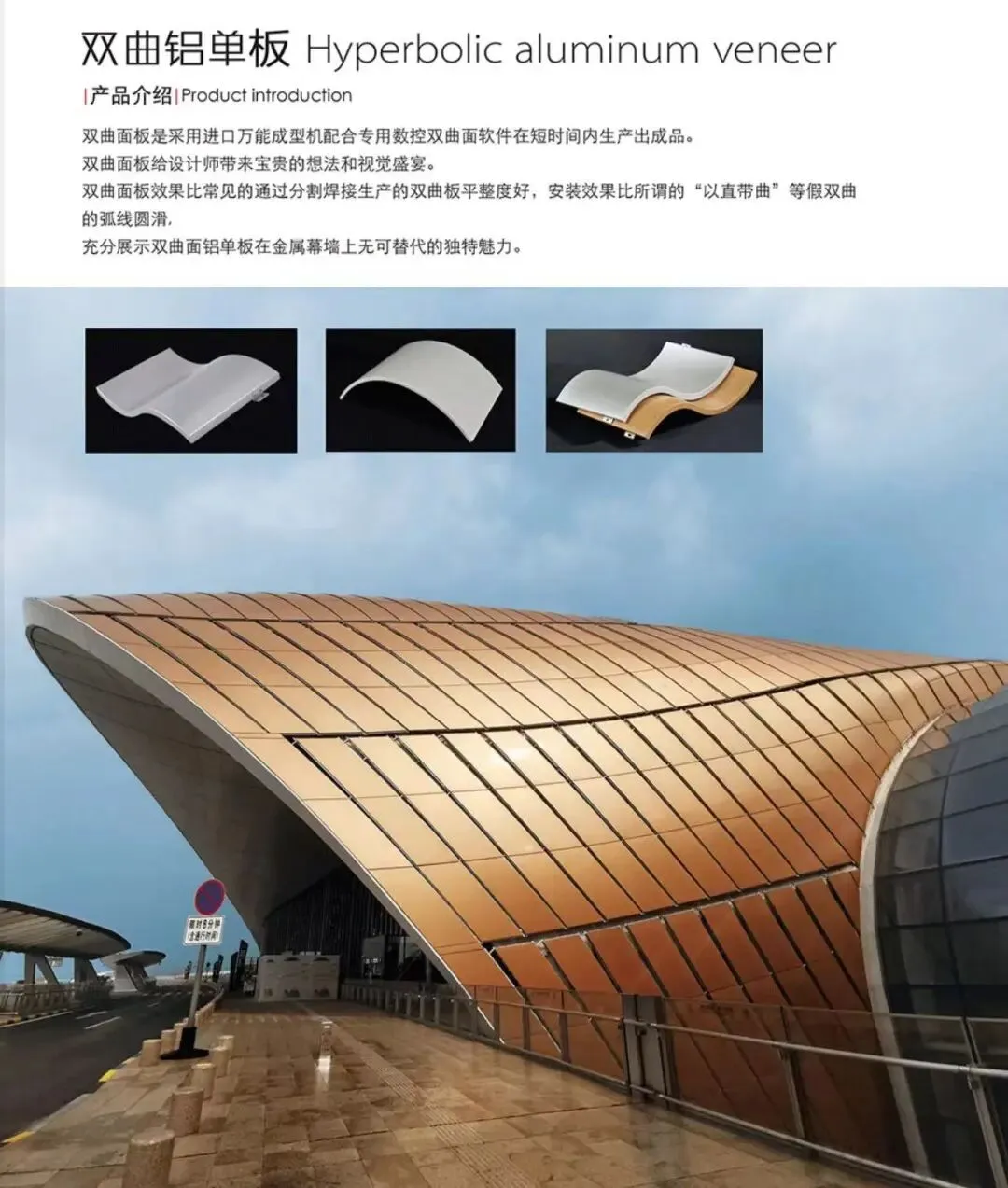 公司现有现代化成套的数控钣金加工设备和先进的氟碳喷涂大型流水线。利用自身的平台优势给客户提供更便捷的采购服务。公司铝单板有充裕的库存,适用于外墙内装等多种场所,应用广泛,能适用产品不同规格尺寸的要求,能高效解决多种造型,异形铝单板的生产加工,供货周期快。