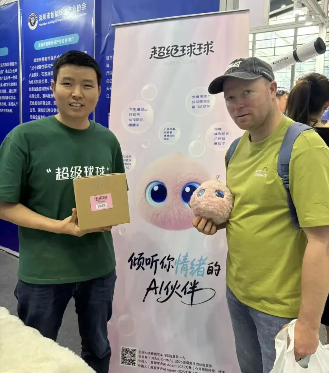 作为一款面向全年龄段陪伴场景的AI产品,超级球球集心理建模、情绪识别、共情对话、情绪疏导与长期陪伴等功能于一体,其软萌的外观设计与富有童趣的交互表达,吸引了来自不同国家、不同年龄层的观众及多方机构代表驻足体验。