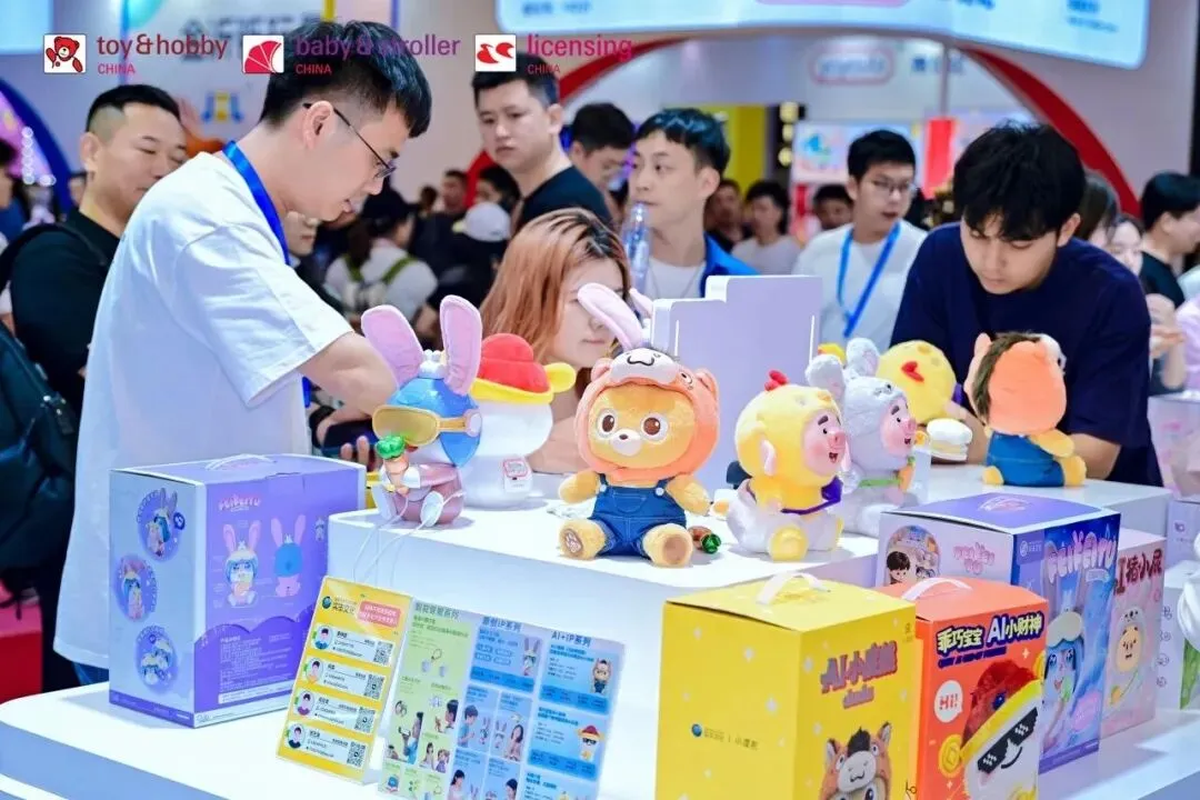展会首设AI智能玩具专区,优必选、实丰文化等企业带来“AI飞飞兔”、具身智能盲盒售货机等新品,科技与童趣深度融合。AI玩具市场预计2030年突破千亿元。