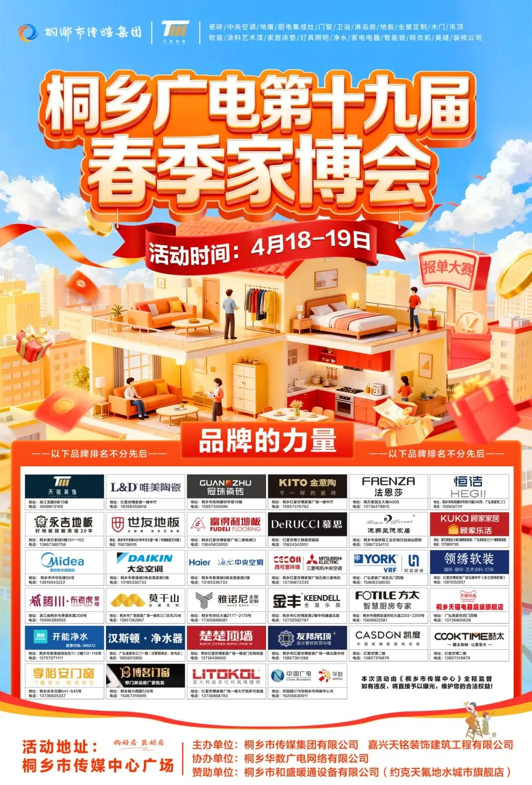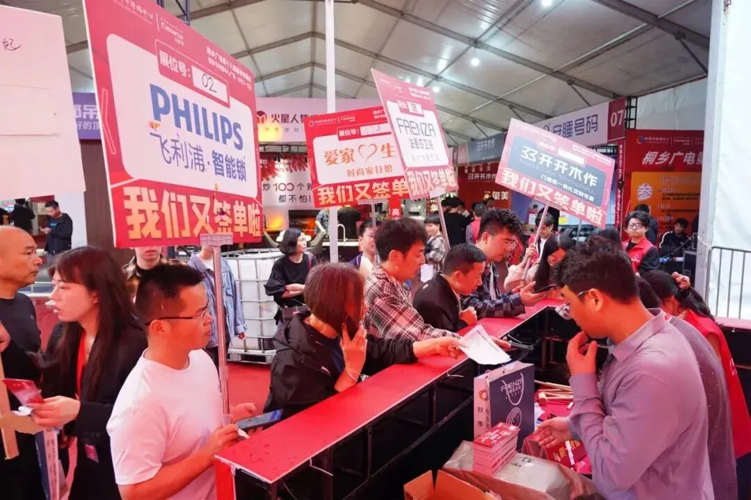 作为桐乡人家门口的品牌活动,桐乡广电第十九届秋季家博会为期两天,集结了30余个知名品牌参展,涉及瓷砖、地板、门窗、卫浴、全屋定制、厨电等多个品类,美的、顾家、慕思、友邦……各类品牌家电一应俱全。