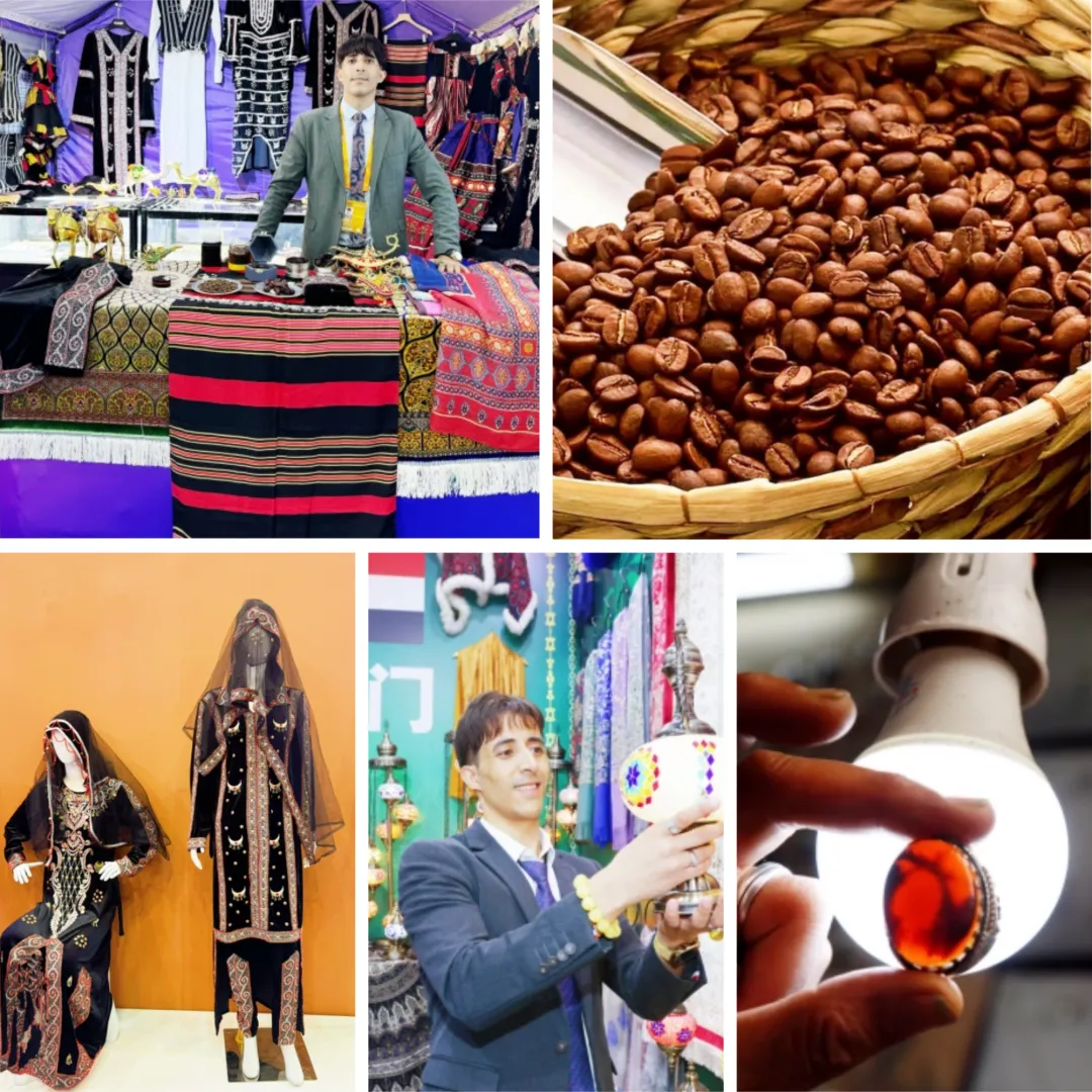 3、展商公司产品介绍:民族特色手工艺品、地毯围巾,极具名族特色的手工装饰物、香料、香水香薰、手工珠宝饰品及民族服饰,咖啡、茶、蜂蜜等等,再搭配上也门传统音乐,烘托出更加浓烈、更加异域风情的也门特色文化氛围!