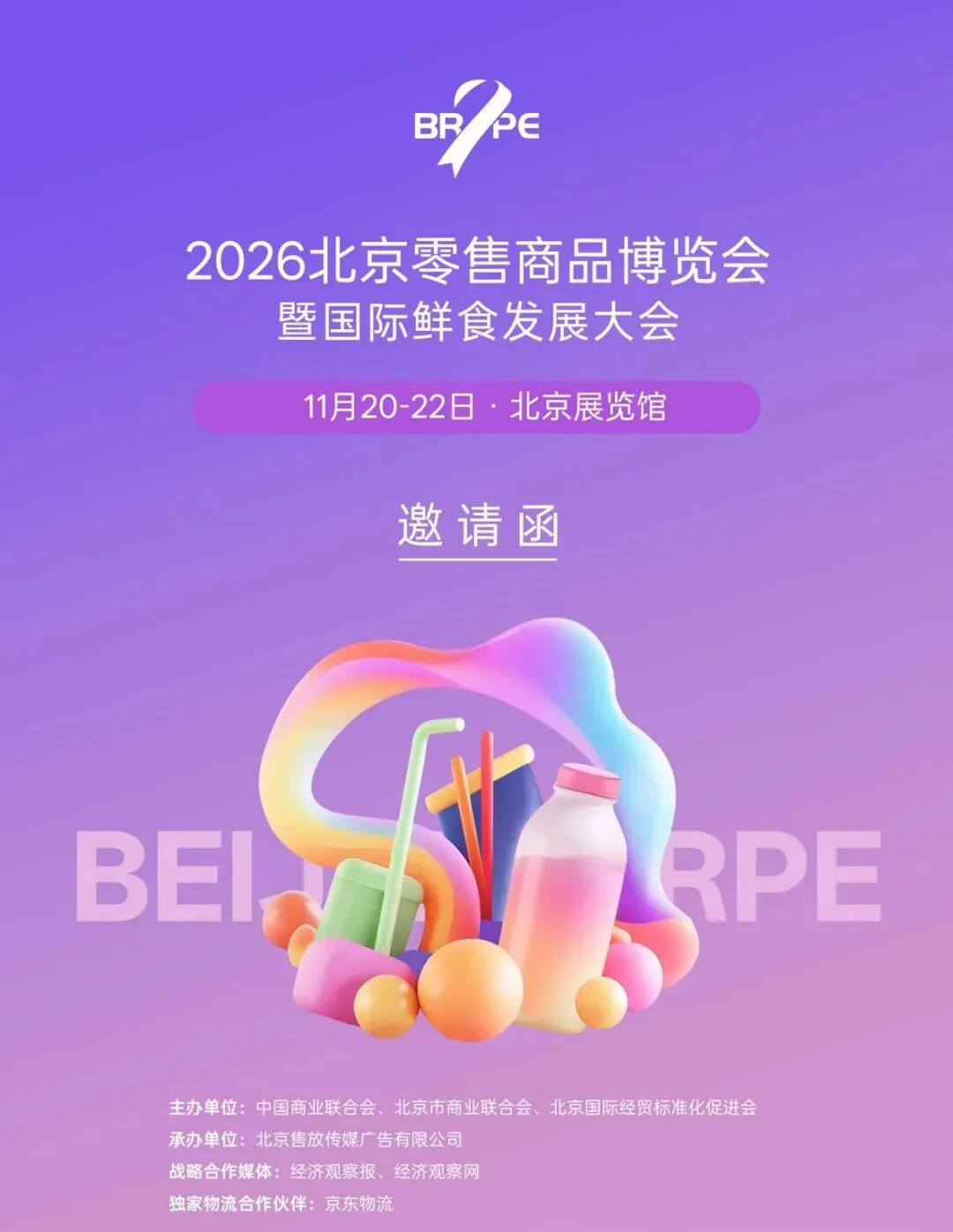 2026年11月20日至22日,由我会联合中国商业联合会、北京市商业联合会主办的“2026北京零售商品博览会暨国际鲜食发展大会”(简称 BRPE)将于北京展览馆举办。