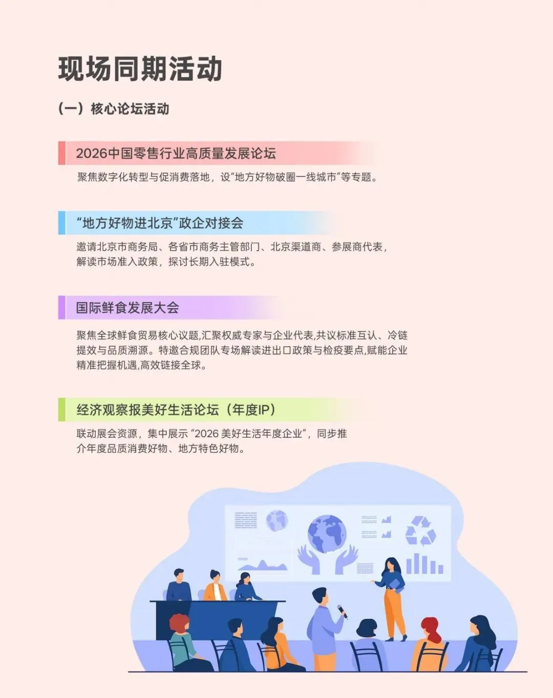 本届博览会以“聚力促消费・赋能新生态”为主题,立足北京国际消费中心城市定位,聚焦零售行业创新变革与全球鲜食产业协同发展,致力于打造集品牌展示、资源对接、趋势洞察、消费转化于一体的零售领域标杆专业平台。展会同期将举办中国零售行业高质量发展论坛、国际鲜食发展大会、经济观察报美好生活论坛(年度IP),同步配套政企对接、选品洽谈、消费互动等多元活动,以专业洞察赋能产业提质升级。