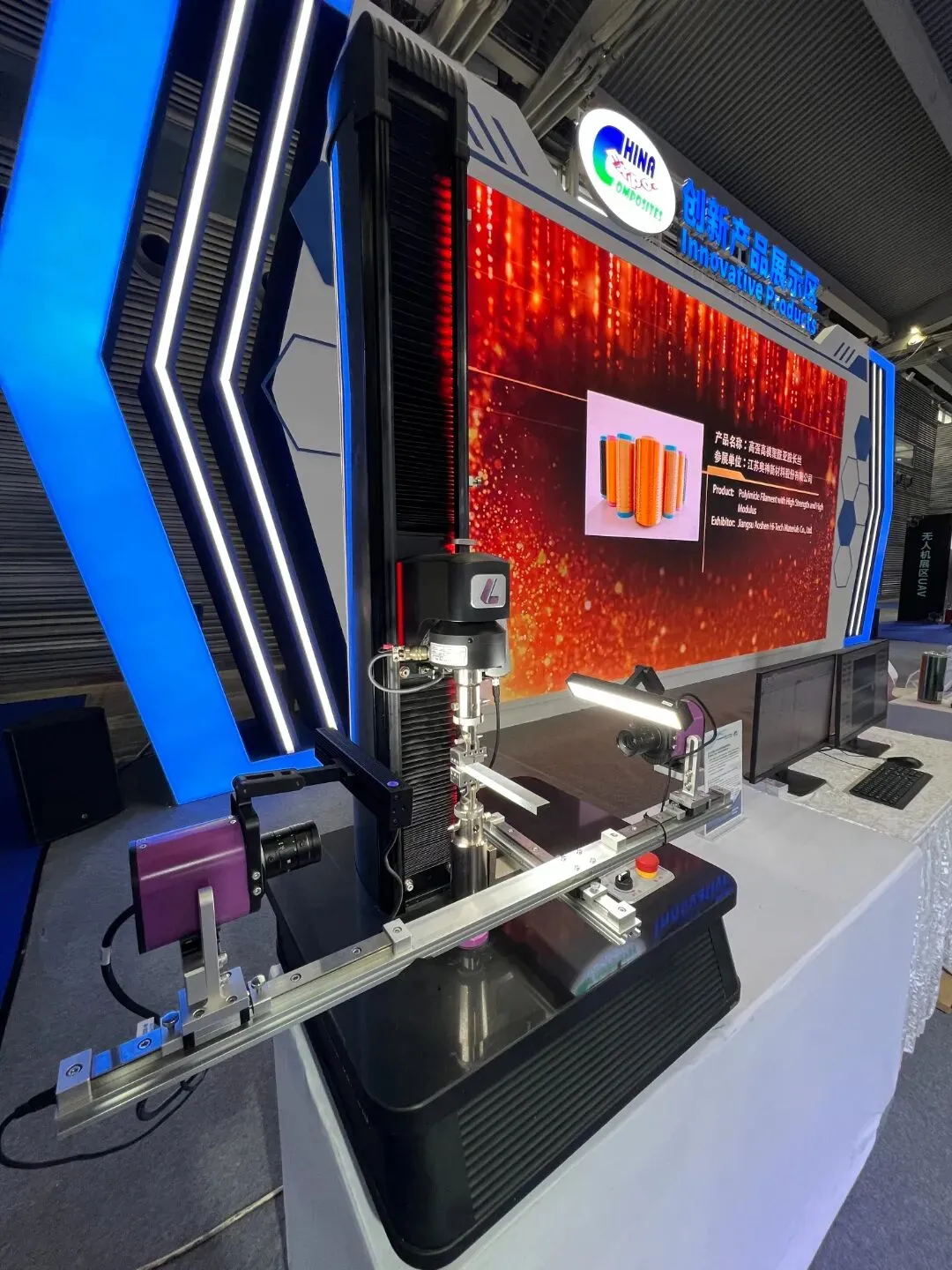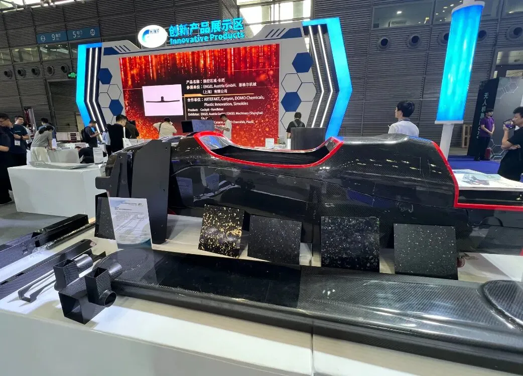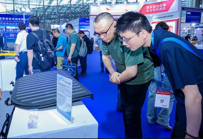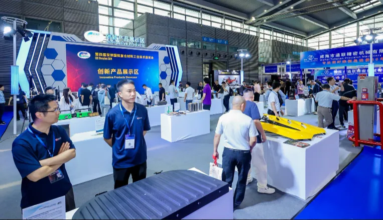 轻量化是复合材料不变的技术追求,更是驱动产业变革的核心动力。从碳纤维、高性能树脂,到航空级预浸料、热塑性新材料,材料创新不断突破重量与性能的边界,为各领域升级注入强劲动能。“无界” 不仅彰显了复合材料在汽车、航空航天、体育休闲、电子电器等场景的广阔应用空间,更体现出深圳作为改革开放前沿阵地,以开放姿态链接全球技术、共促产业发展的胸怀与格局。本届展会特设创新产品展示区,30 家企业携 40 余款先锋创新产品集中亮相,集中展示复合材料领域自主可控、绿色低碳、高端应用标杆成果,涵盖国产自动铺丝编程软件、化学溶解法再生碳纤维技术、SMC 新能源汽车尾翼、八旋翼碳纤维无人机架、木纤维复材无人机等多项前沿成果,充分展现行业技术实力与创新活力。
