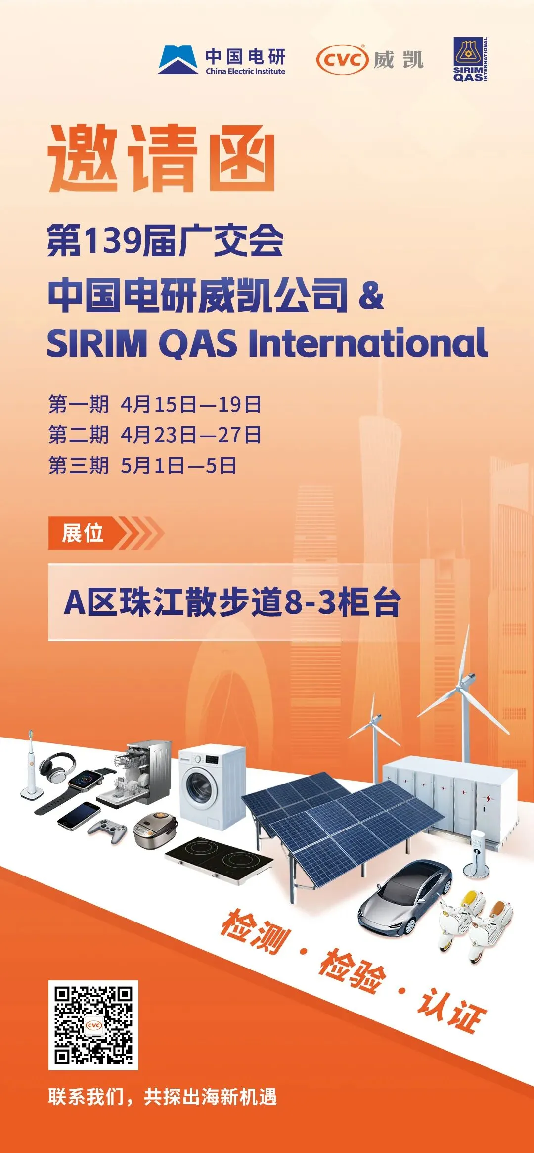 第139届广交会于4月15日盛大开幕,中国电研威凯公司作为权威的第三方质量技术服务机构,已连续多届在展会设展,服务领域覆盖智能家居、智能汽车、能源装备、医疗健康等行业。可为参展企业提供基础研究、标准化、检测、认证、检验、计量、能力验证及质量提升延伸服务。