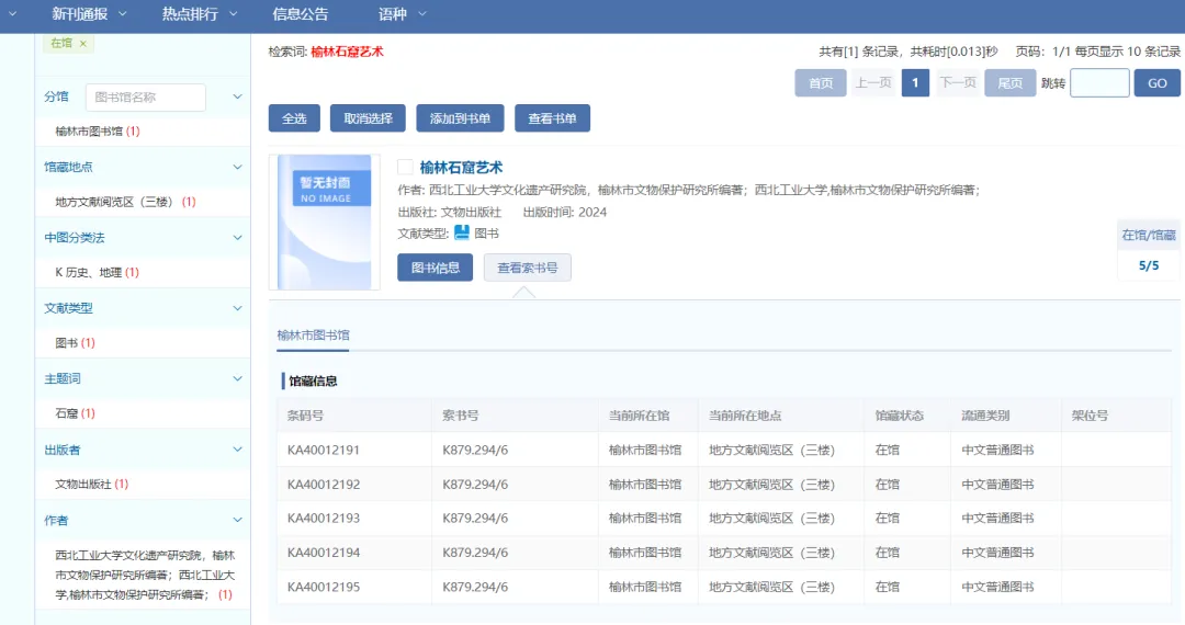 榆林市图书馆地方文献阅览区藏《榆林石窟艺术》
