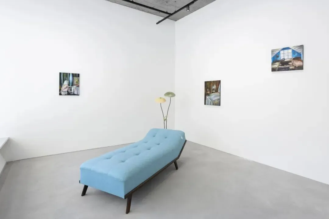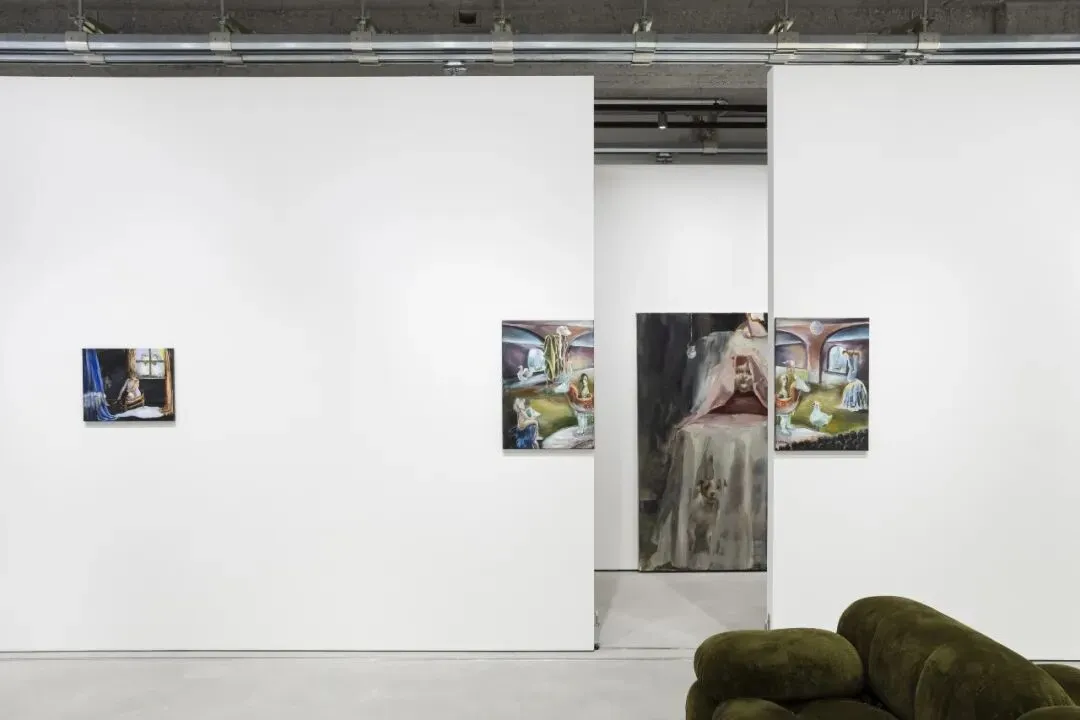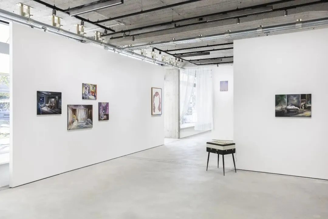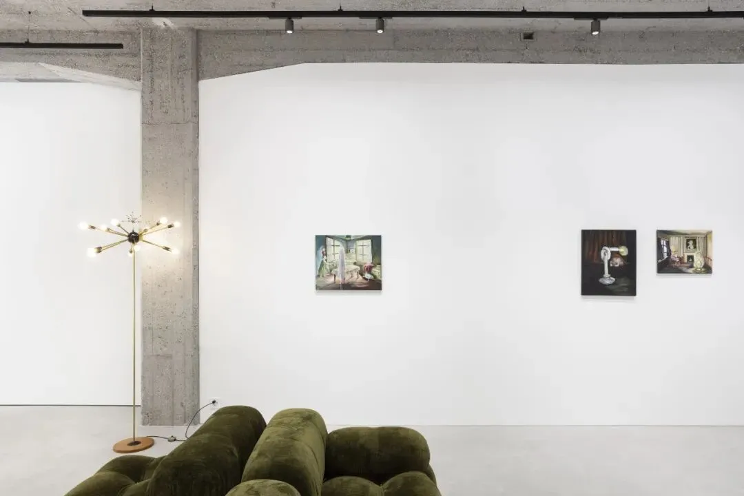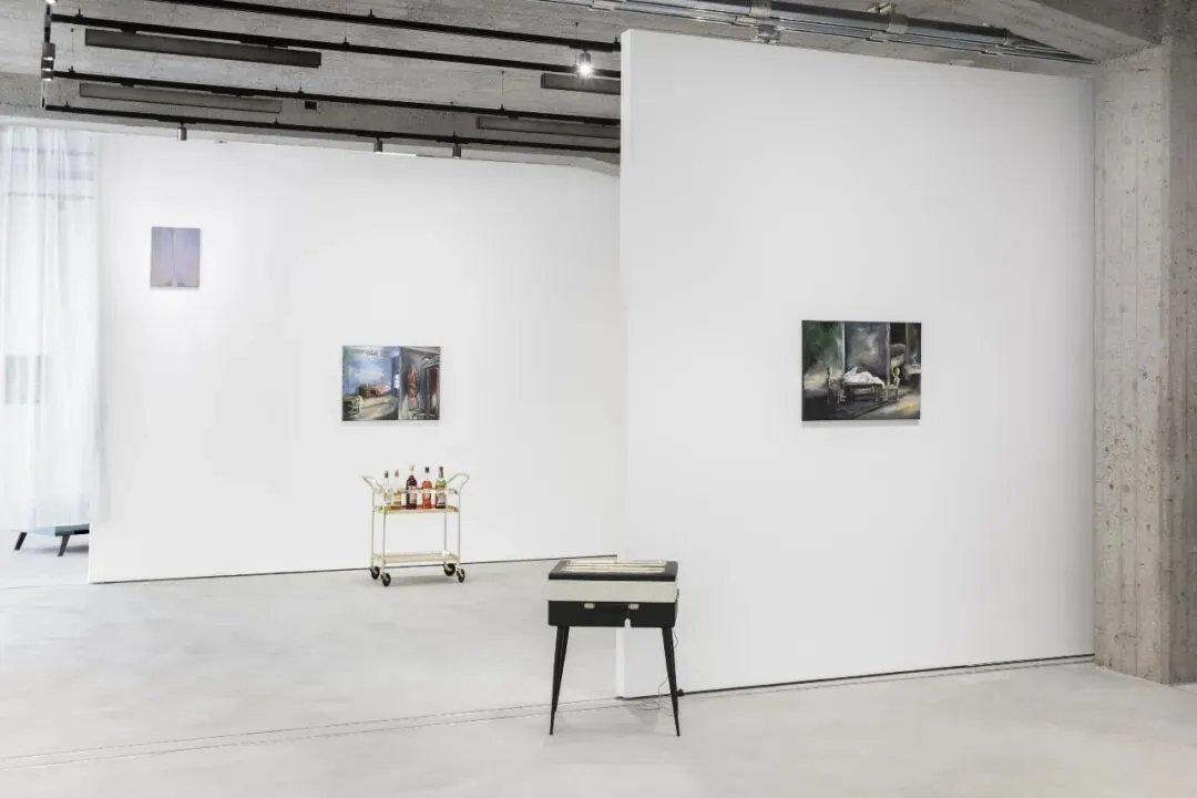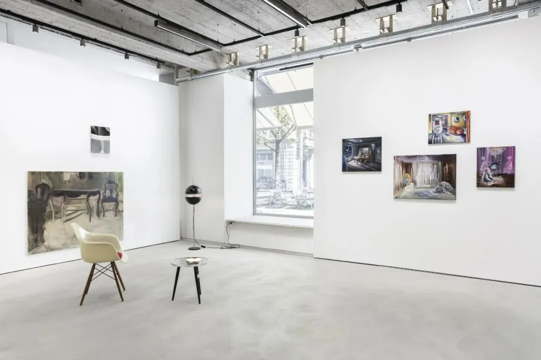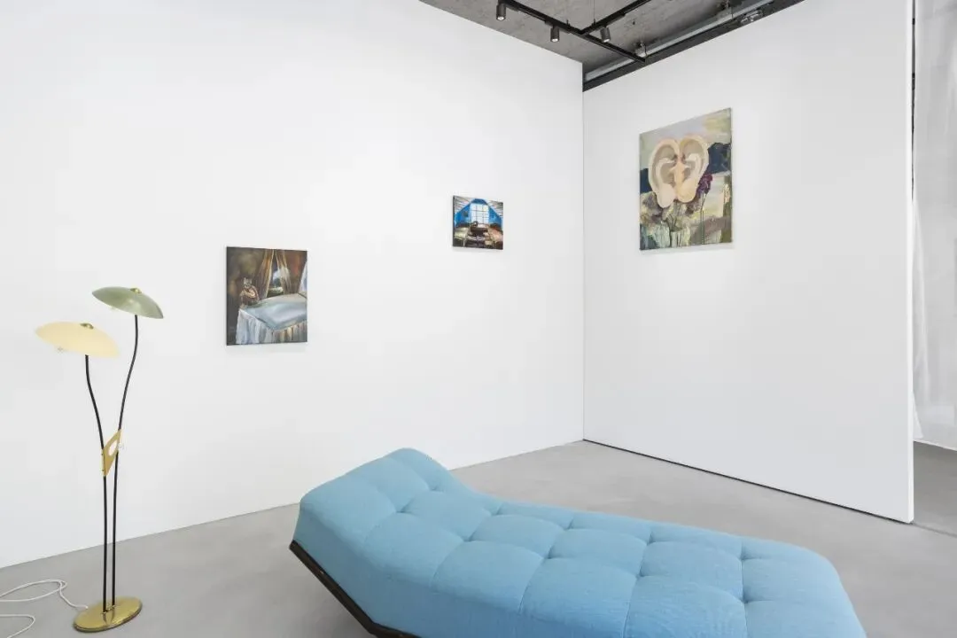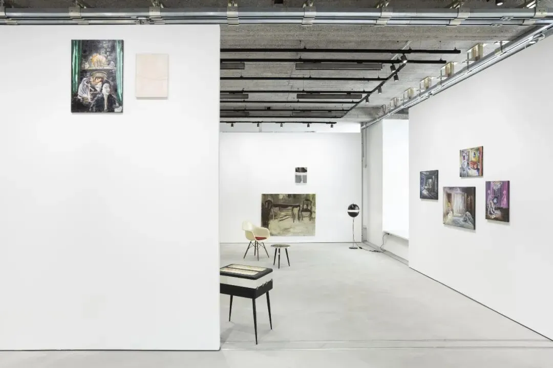 麦勒画廊荣幸地宣布举办艺术家克洛丁·埃尔布个展“Danke, ich schlafe gut”(谢谢,我睡得很好)。此次展览汇集了艺术家最新创作的系列绘画及部分精选早期作品,以一系列私密的室内场景徐徐展开,日常物件、人物与动物在梦境般的氛围中浮现。埃尔布以黑色画布为基底进行油画创作,使画面如同从幽暗中生长而出,邀请观者步入那些既熟悉又暗藏疏离感的场景。身份认同、记忆与情感关怀等主题以微妙的方式贯穿作品始终,常通过双重或镜像的构图语言来呈现。融入展陈空间的家具更进一步延伸了这般氛围,将画廊空间转换为游走于家居环境、剧场舞台与心理场域之间的独特风景。