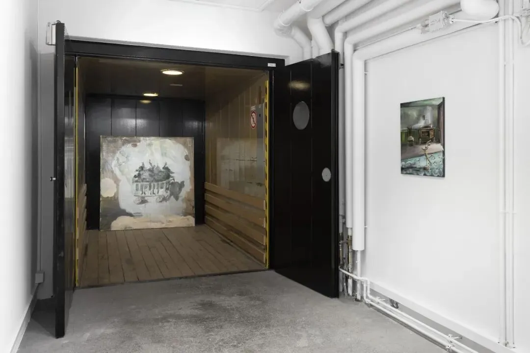 Galerie Urs Meile is pleased to present Danke, ich schlafe gut (Thank you, I sleep well), a solo exhibition by Swiss artist Klodin Erb. Bringing together a new series of paintings alongside selected earlier works, the exhibition unfolds as a sequence of intimate interior scenes in which everyday objects, figures and animals appear in dreamlike settings. Working with oil on black canvas, Erb creates images that seem to emerge from darkness, inviting viewers into spaces that feel both familiar and strangely unsettled. Themes of identity, memory and emotional care run subtly throughout the works, often expressed through gestures of doubling and reflection. Furniture integrated into the exhibition space further extend this atmosphere, transforming the gallery itself into a space that shifts between domestic setting, theatrical stage and psychological landscape.