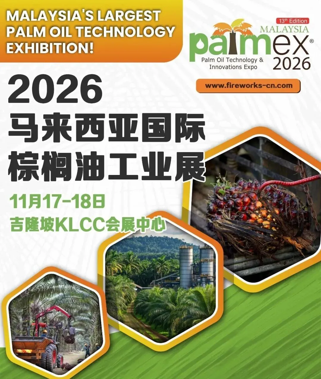 2026第13届马来西亚国际棕榈油工业展,由新加坡Fireworks展览集团主办,马来西亚农业部、马来西亚棕榈油委员会、亚洲棕榈油杂志社联合支持,是亚洲棕榈油全产业链极具专业性与影响力的行业展会。