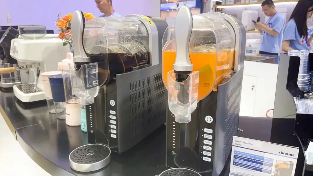 现场不少采购商驻足新品展台,亲自体验冰沙机的操作流程。
