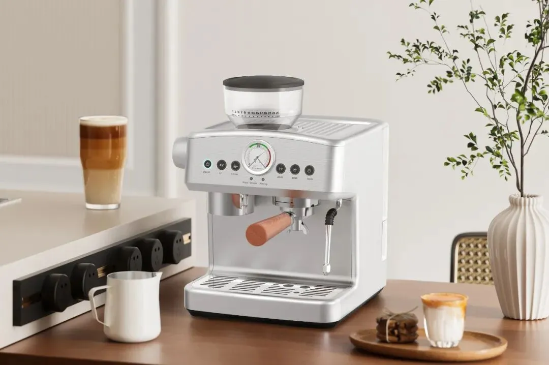 其中半自动咖啡机专为家用场景与咖啡馆定制。配备PID 精准控温系统与可自定义萃取时间功能,完美适配不同咖啡豆的特性,稳定萃出咖啡馆级的醇厚油脂与丰富风味。同时,它兼顾了专业操作感与上手便捷度,磨压一体的设计省去繁琐步骤,双系统同步工作提升出杯效率,让家庭咖啡角轻松升级为精品出品点,也让咖啡馆实现高效稳定运营。