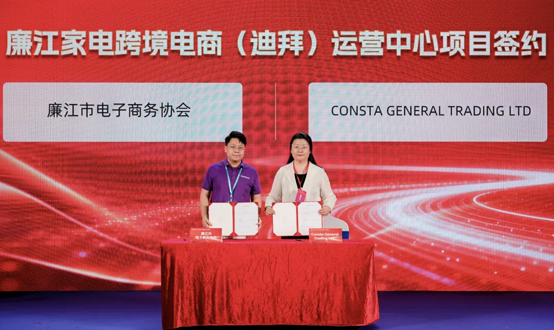 与“廉江家电”区域公共品牌发布同步的,还有廉江在全球布局的“产业飞地”网络。廉江家电·喀什(中亚)“线上+线下”展销中心、廉江家电·美国展销中心同日开业,迪拜运营中心、沙特供应链项目签约,加上此前的义乌外贸工作站和马来西亚运营中心,廉江家电的“产业飞地”网络逐渐成型。