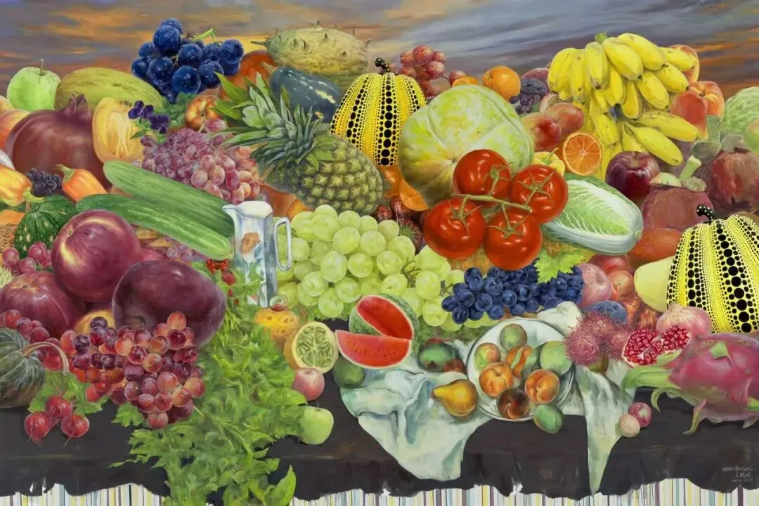 “花·果·山”在此,已然彻底褪去了其脍炙人口的神话叙事表层与集体想象的外衣,内化为一种独特的艺术创作方法论与一种深邃精神结构的双重隐喻。它首先指向一种丰盈而有序、层叠而交织的动态平衡的认知层次与价值序列:如花般精微、敏感、瞬息万变却直指存在核心的感性触须与初觉;如果实般饱满、沉重、凝聚着时间能量以及社会欲望与物质密度的实体性存在;如山峦般稳固、苍茫、浑厚,提供精神仰止、心灵归依与超越视野的永恒架构。