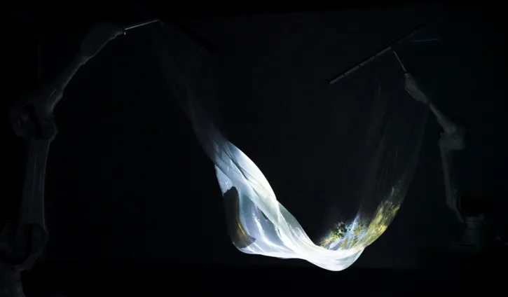 《翩翩》中最直观可见的机械臂博弈,陈抱阳不断尝试在人与机器之间寻找新的对话方式。他以规则为引擎,让机器在有限的框架中迸发涌现的创造力;又在观众面前,将这种创造力与艺术家的主观能动性一道,转化为有温度的视觉戏剧。正是在这多重协同之中,我们得以窥见当代艺术在“作者性”与“机器能动性”交融之下的全新可能。