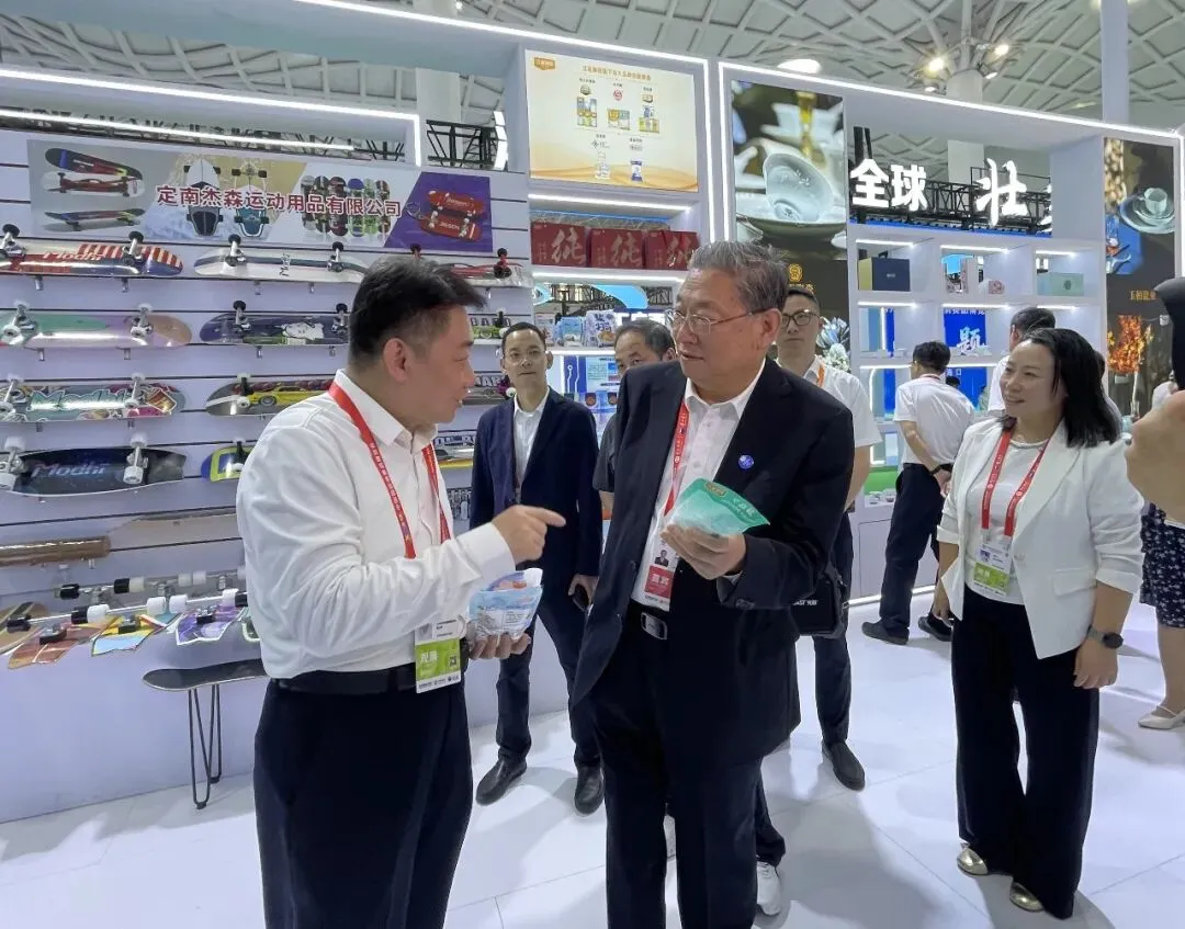 启动活动后,秦义一行莅临江西综合展馆巡馆,专程来到江盐集团展位参观指导,任雁飞详细介绍了江盐集团参展情况、产品特色、生产工艺及市场布局,秦义对江盐集团坚守绿色生态发展理念、深耕盐业主业、推动产品创新升级的做法表示充分认可,并鼓励江盐集团抢抓海南自贸港全岛封关运作政策机遇,立足江西优质盐资源优势,持续强化品牌建设、优化产品结构,打响江西消费品品牌,让更多优质江盐精品走向更大市场、行销全球。