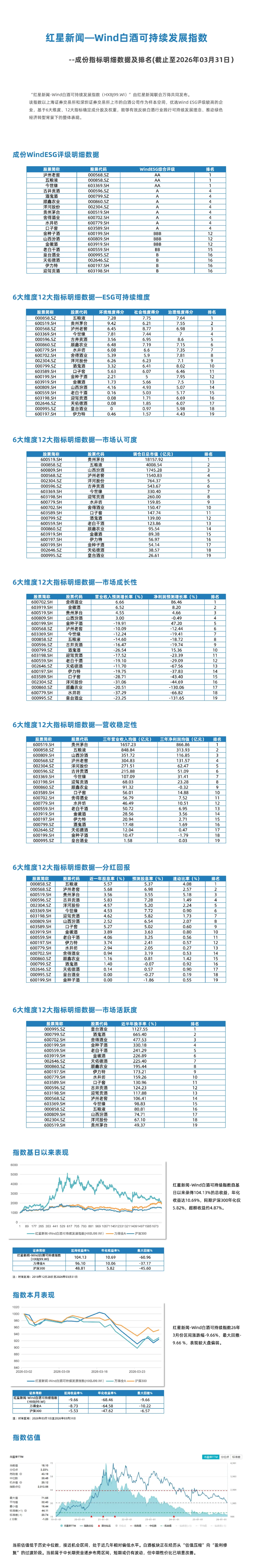 近日,由红星新闻联合万得共同发布的“红星新闻-Wind 白酒可持续发展指数(HXBJ99.WI)”3月排名出炉。