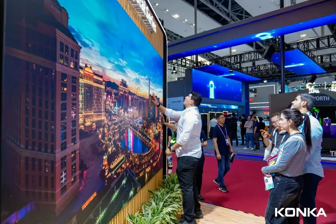 本次展出的163英寸MLED直显产品,更是集多项优势于一身,精准契合本届广交会“新、绿、智”的发展趋势:可实现无限拼接、突破尺寸限制,适配智慧展厅、高端会议室等多场景需求;具备高亮度、高可靠性、高对比度、墨色一致性高、DCI-P3广色域等核心特点,画质表现力远超传统LCD显示,能呈现更细腻的画面细节与更丰富的色彩层次,带来沉浸式视觉体验;同时兼具优异的高能效特性,极致冷屏设计不仅节能环保,更能有效延长显示模组使用寿命,实现性能与节能的双重提升,彰显绿色智造理念。