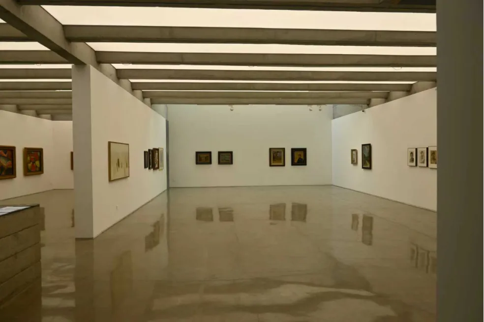 首站抵达偏锋画廊。偏锋画廊的空间精致克制,经过多次装修改动后引入了多层次的自然光。彭玮老师邀请到了画廊创始人王新友老师,王新友老师亲自为我们解读了《百年一刻》的展览内核,以时间为线索,梳理艺术在百年间的瞬间与印记,讲述展览背后的学术思考与呈现初心。沉静的空间里,经典与当代对话,让我们最先体会到专业画廊的格调与态度。