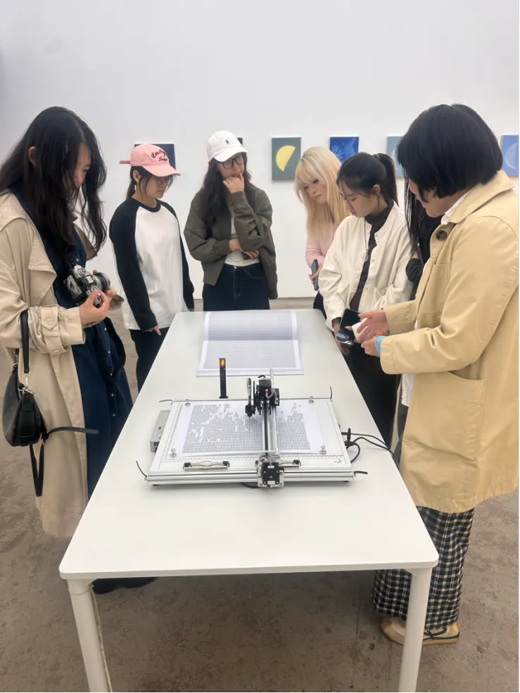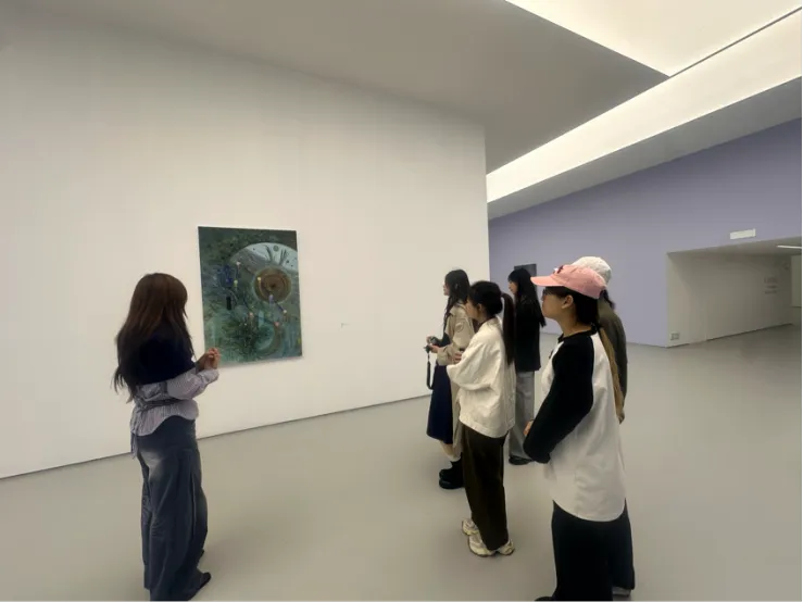 收官于蜂巢当代艺术中心。王琳老师介绍的分级策展、双空间布局、专业光影与动线,让同学们见识系统化运营的严谨,从微观叙事到宇宙视野,艺术家的创作脉络清晰铺展,学术与市场在此达成默契平衡。