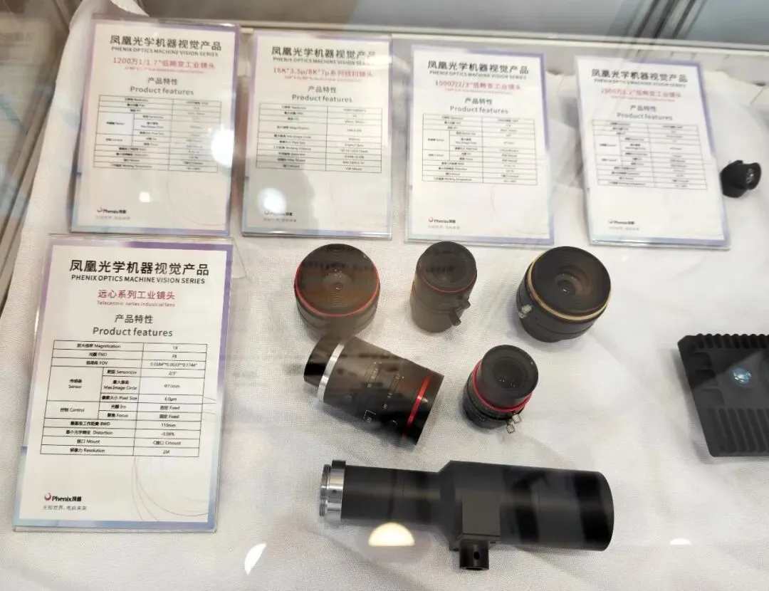 针对智能制造与工业检测,凤凰光学推出多款工业镜头。高像素低畸变工业镜头系列覆盖1.2"、2/3"、1/1.7"靶面,焦距范围广,光圈明亮,畸变≤±0.1%,C接口,适用于高精度检测。线扫镜头系列适配16K/8K分辨率,放大倍率可调,最大像圈Φ60mm,光学畸变低,适用于高速连续检测。远心工业镜头提供1X倍率,畸变极低,解像力2M,适用于精密测量。为工业自动化赋予更智慧的“眼睛”。