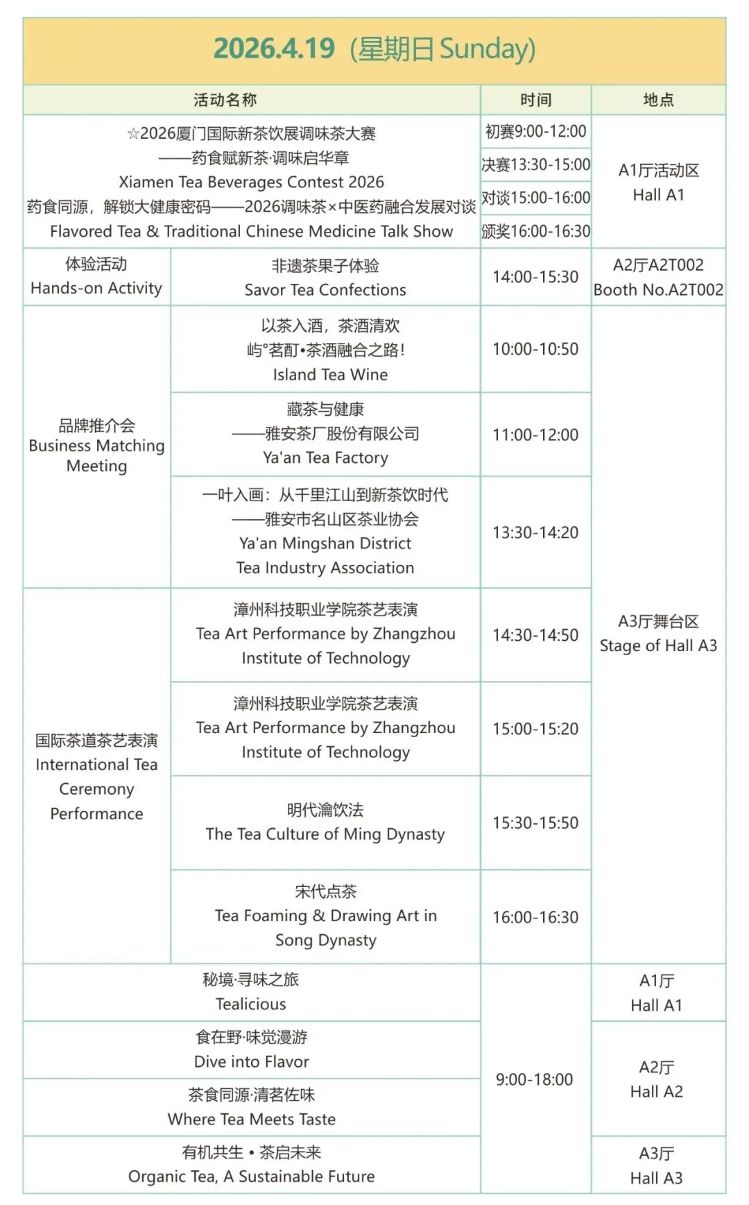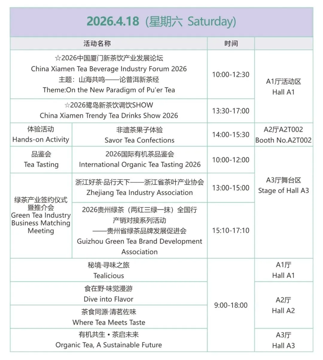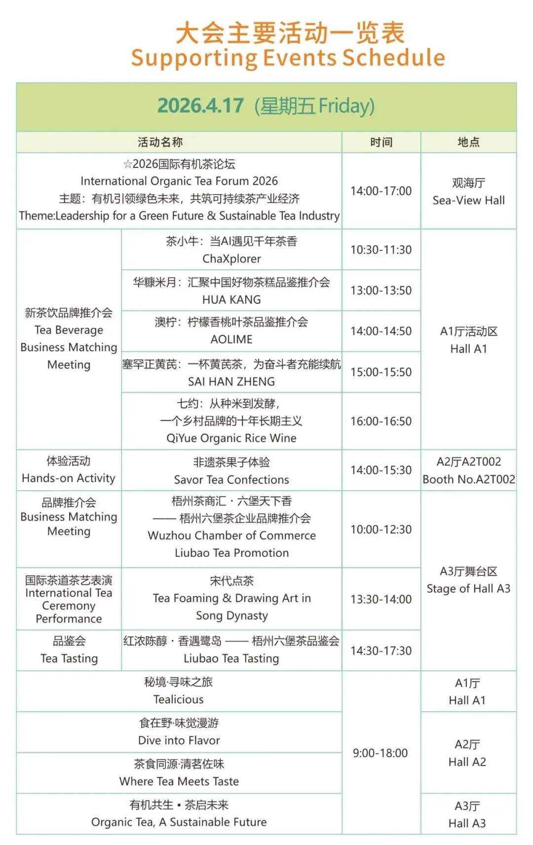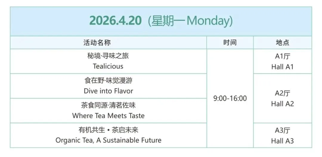 • 特设有机茶专区,汇聚全球有机茶企业与种植基地,同期举办国际有机茶论坛、品鉴会。