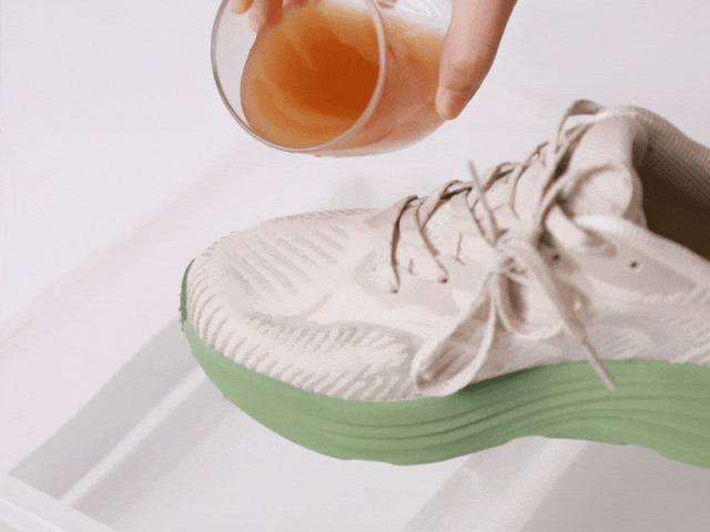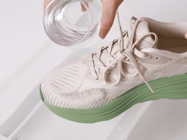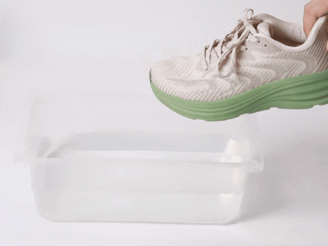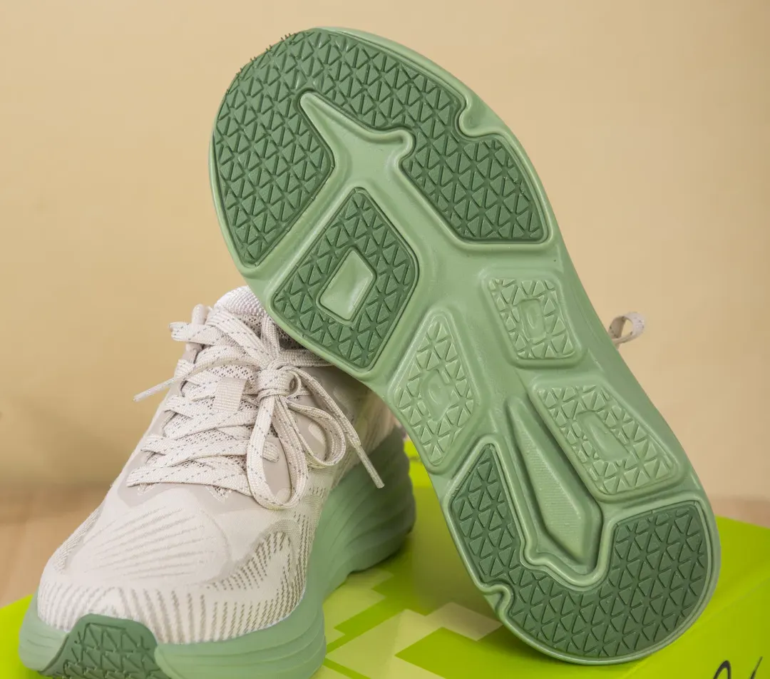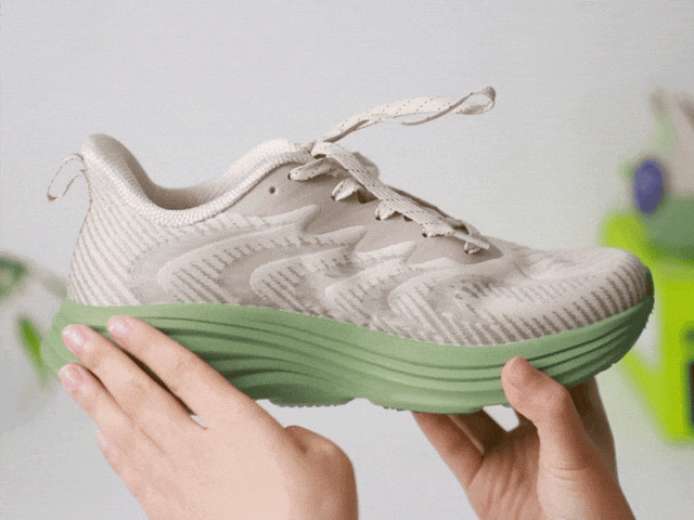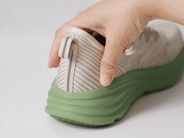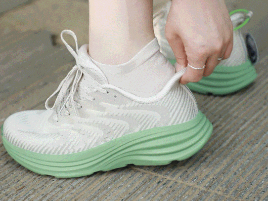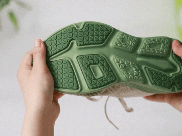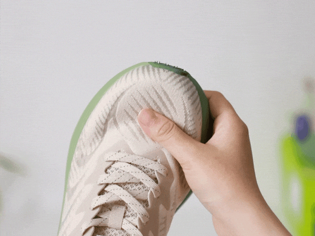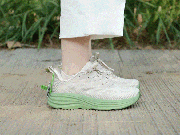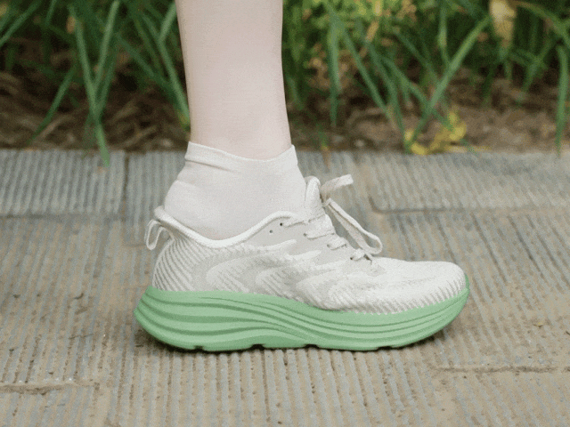 EVA+橡胶混合发泡科技,让鞋底像蓬松蛋糕般发泡膨胀,脚一压就弹出QQ糖般的软弹感,既有踩屎般的软糯,又有稳稳的支撑,不震脚掌,不晃膝盖。