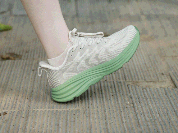 这款跑鞋还藏了一个大亮点:步态摇摆设计!基于人体行走工学原理,在鞋子的前、后巧妙设计了10°双翘弧形结构!